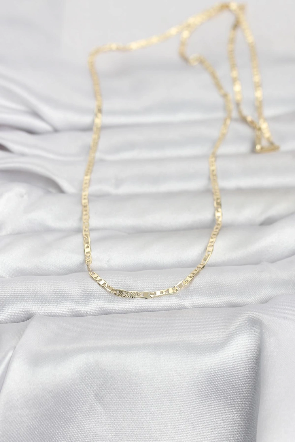 CM 14K Gold Renk Lazerli Yassı Model Zincirli 60 cm Kadın Kolye