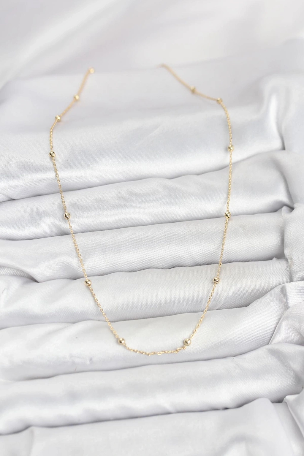 CM 14K Gold Renk Minik Top Zincirli Kadın Kolye