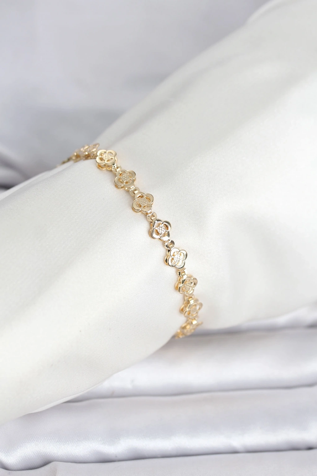 CM 14K Gold Renk Yonca Model Kadın Bileklik