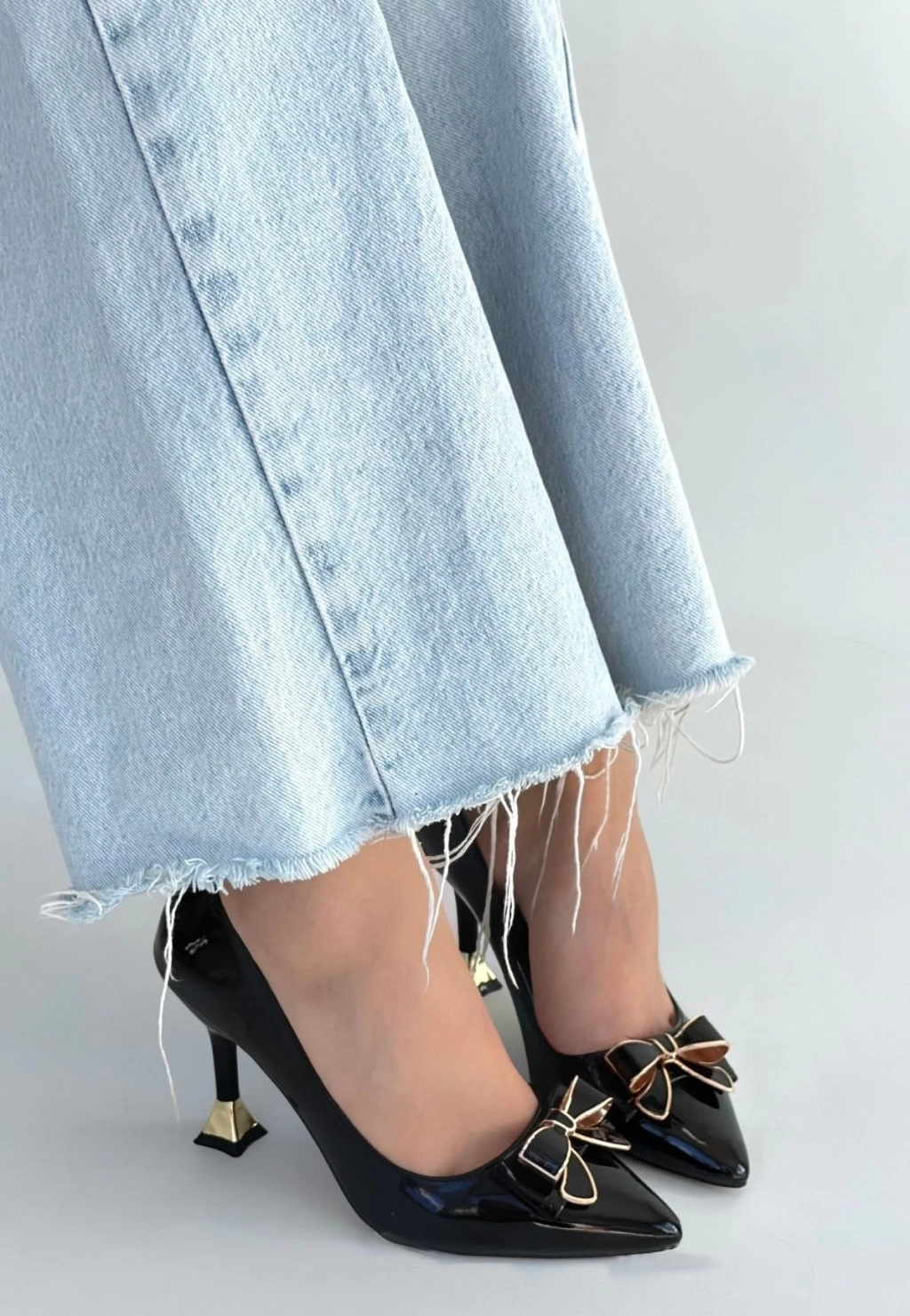Toran Siyah Rugan Siyah Süet Detaylı Topuklu Ayakkabı