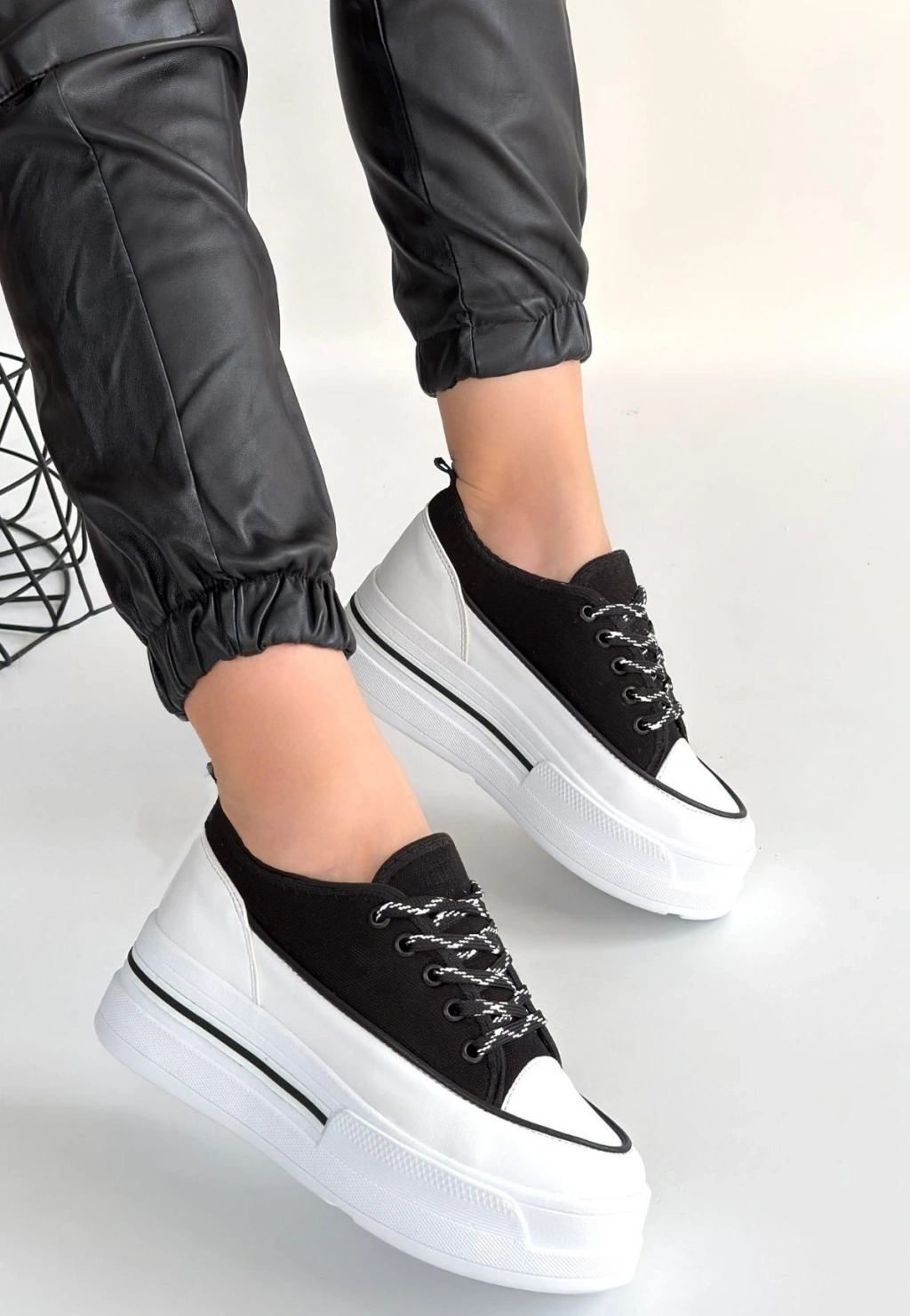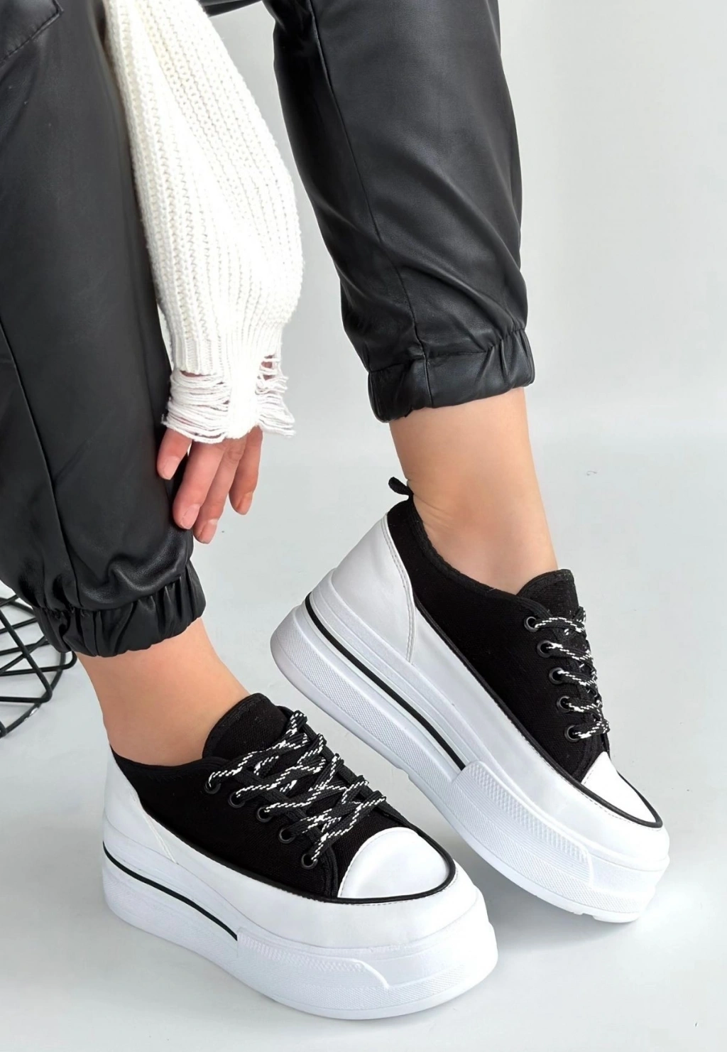 Dalen Siyah Keten Bağcıklı Spor Ayakkabı