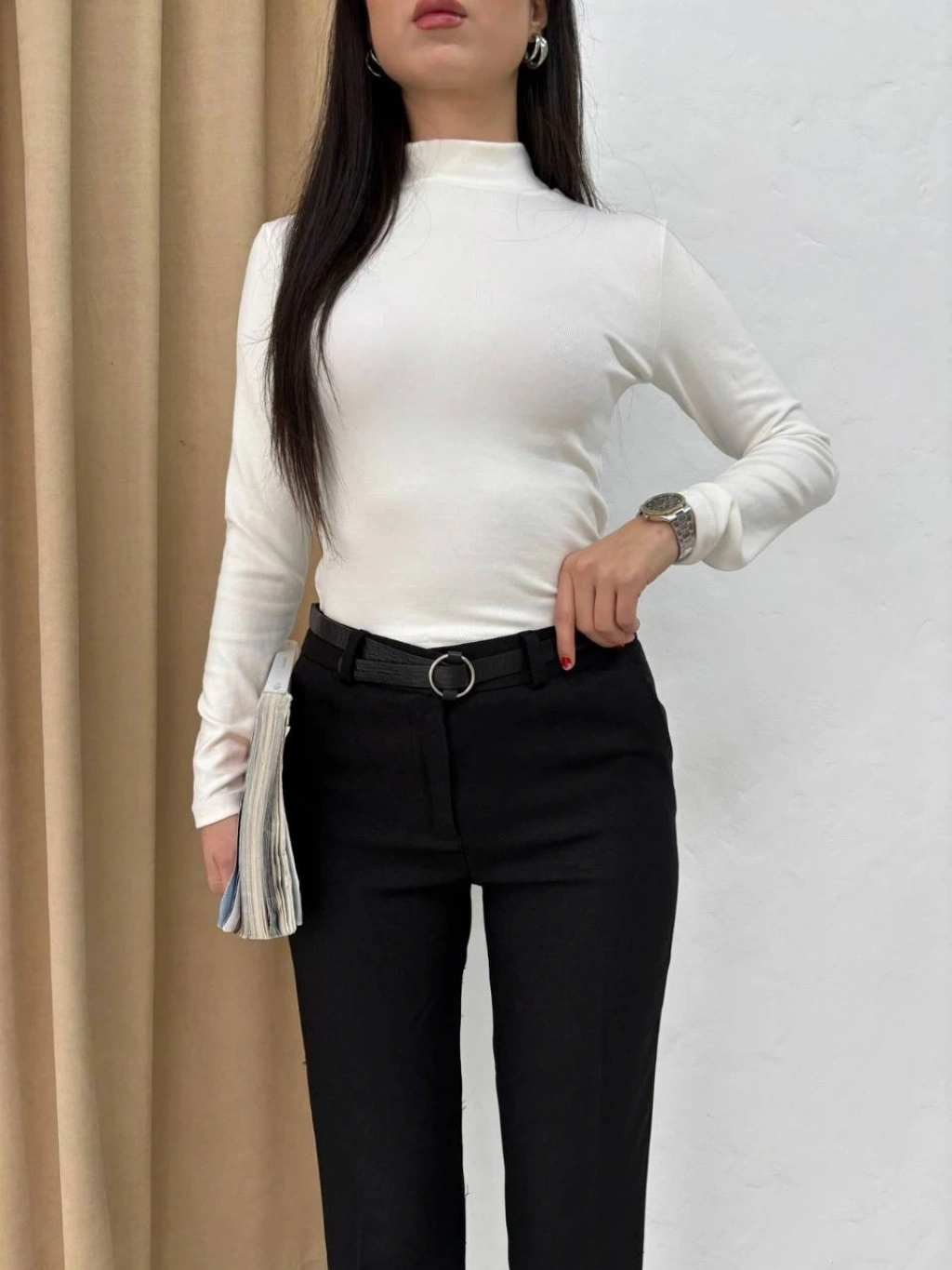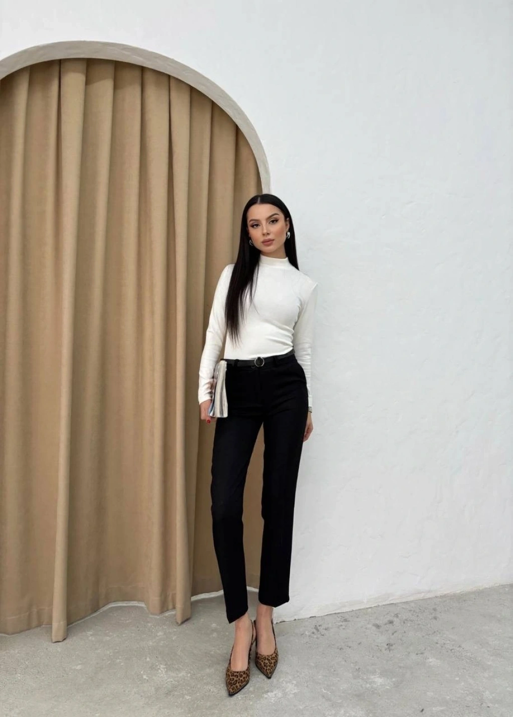 İspanyol yırtmaçlı paça deri pantolon siyah hn