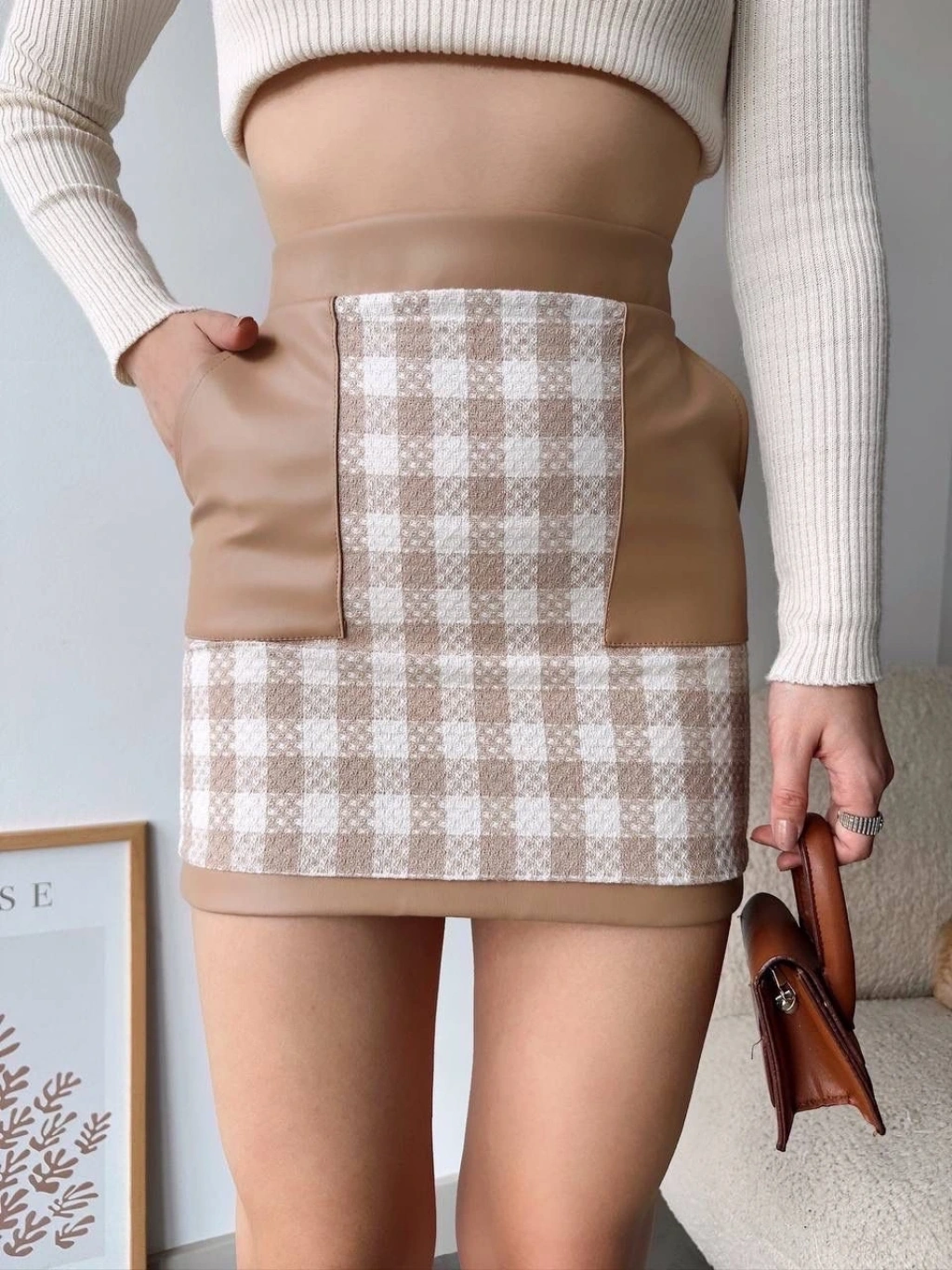 Cep detaylı oval kapaklı deri etek kahve h240048