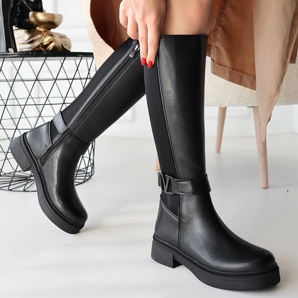 Mooni Siyah Cilt Topuklu Çizme