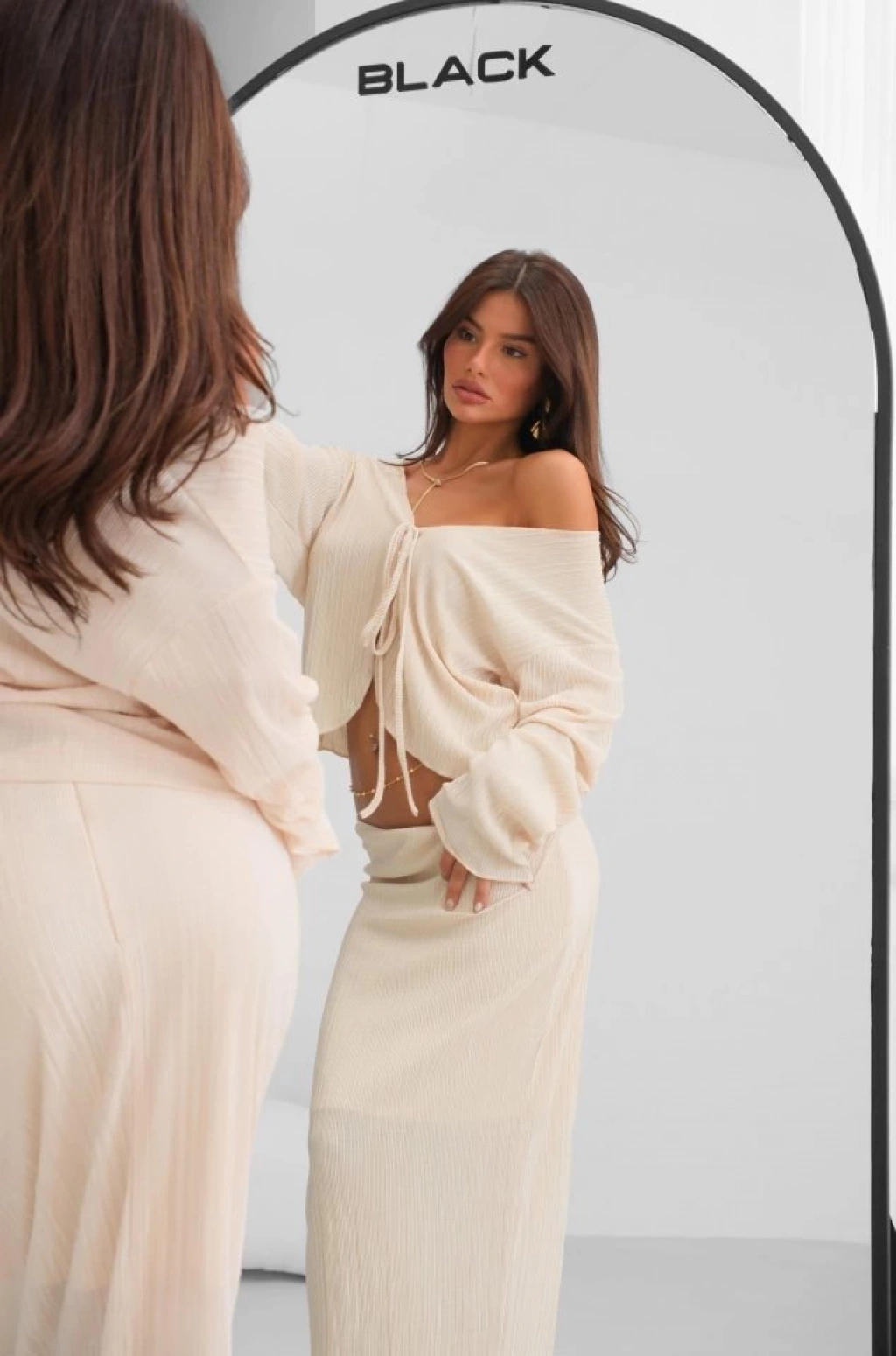 Modelin Ölçüleri: Boy:165, Kg:55, Göğüs:90, Bel:72, Kalça: 100