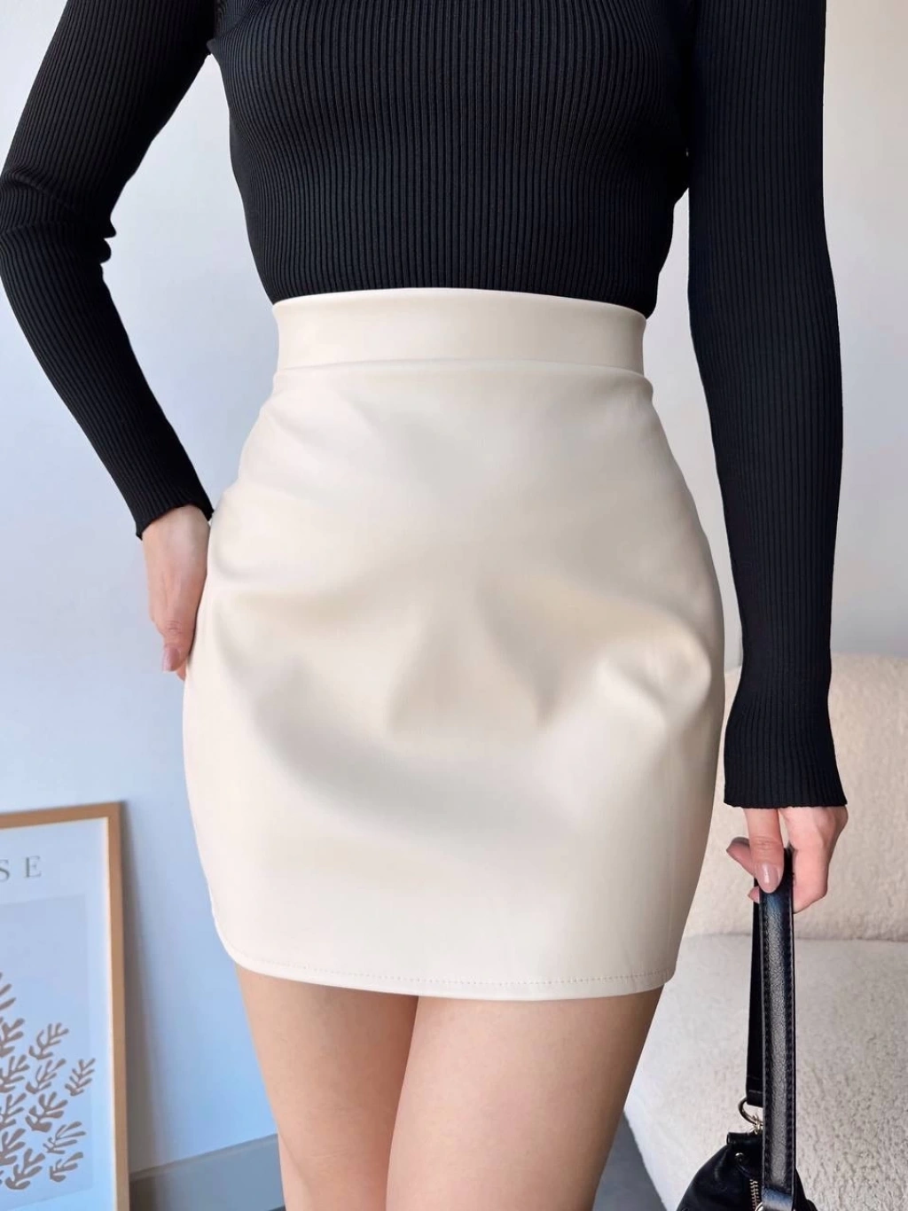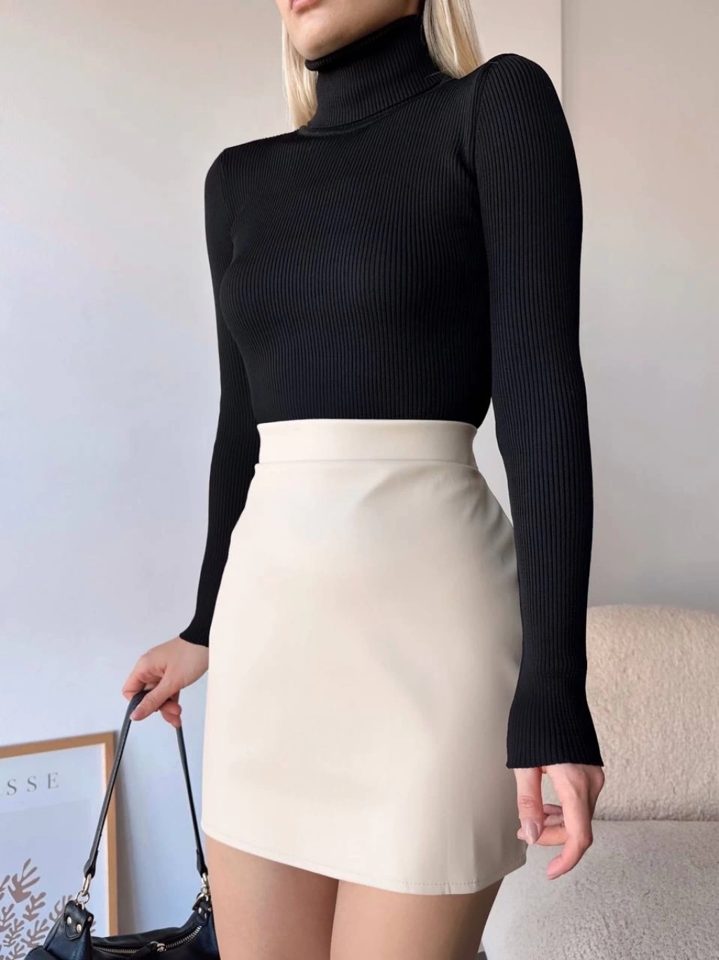 Cep detaylı oval kapaklı deri etek siyah h240048
