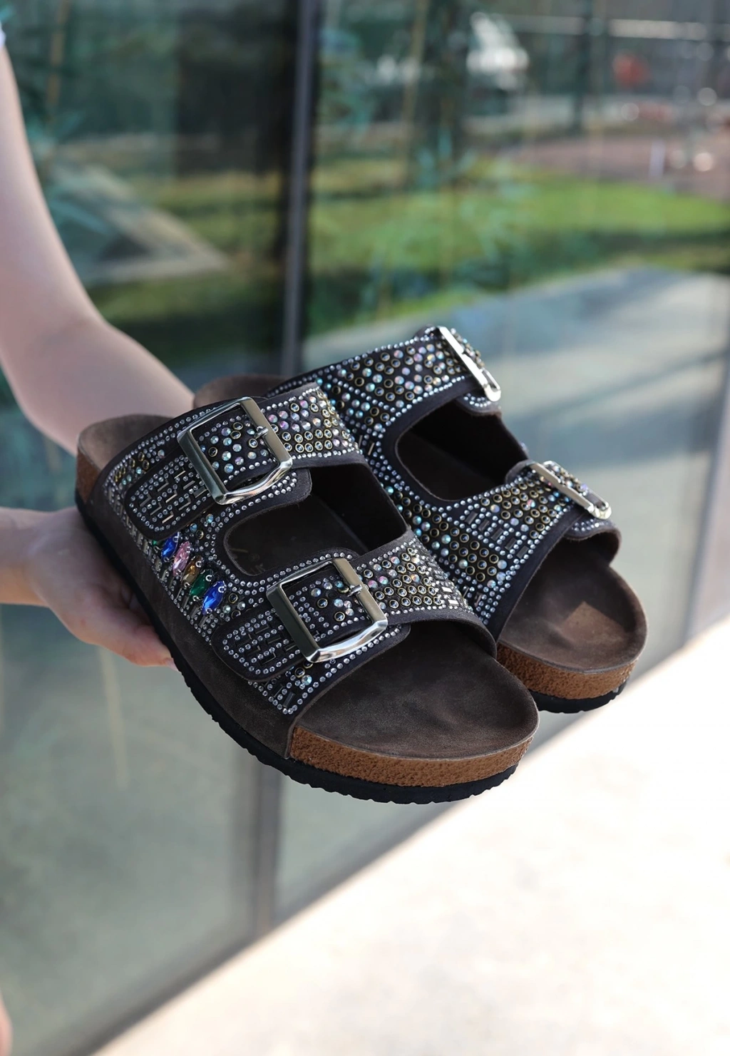 Edaj Kahverengi Nubuk Boncuk İşlemeli Terlik
