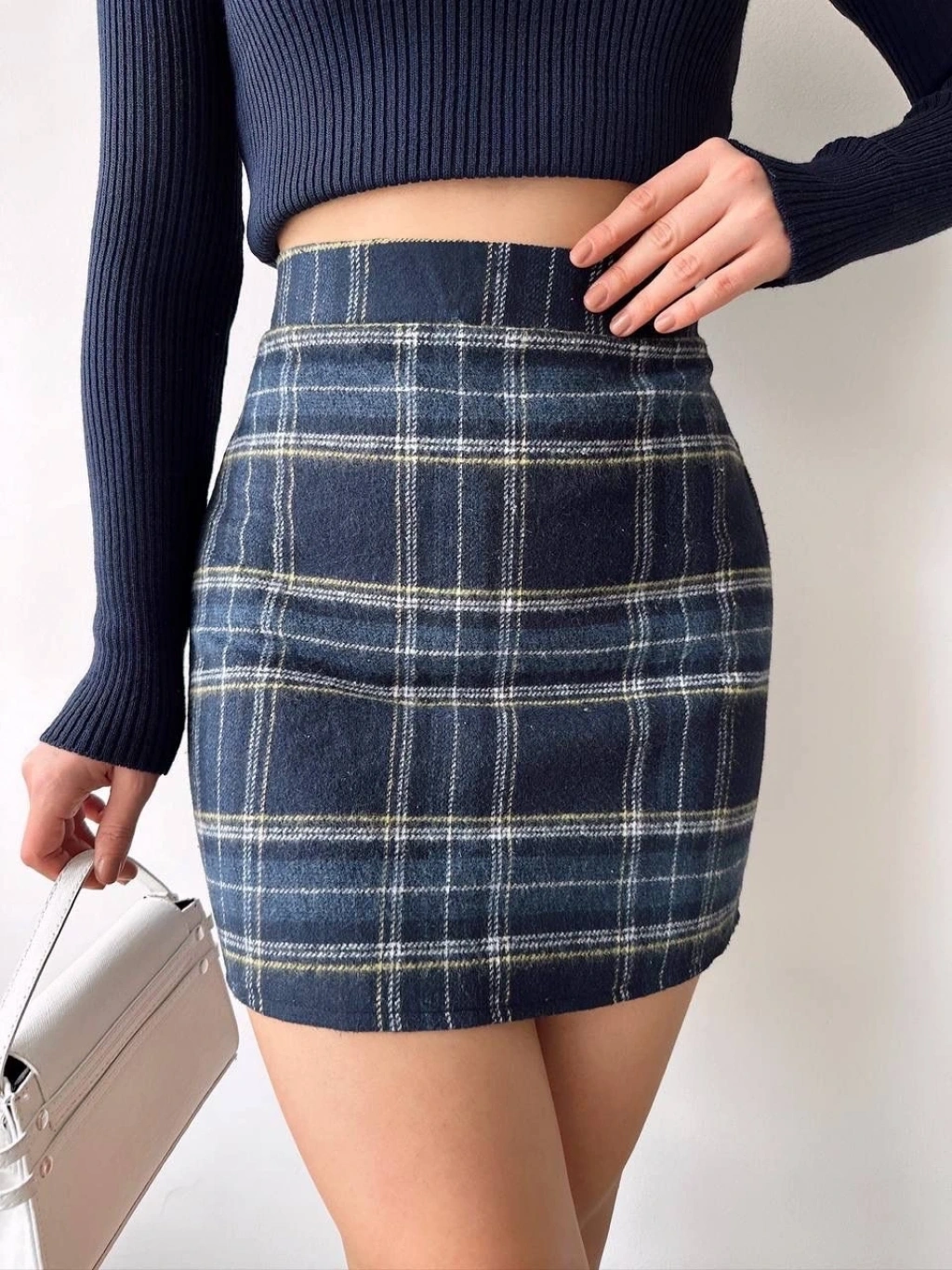 Deri garnili kaz ayağı kaşe etek siyah h24604