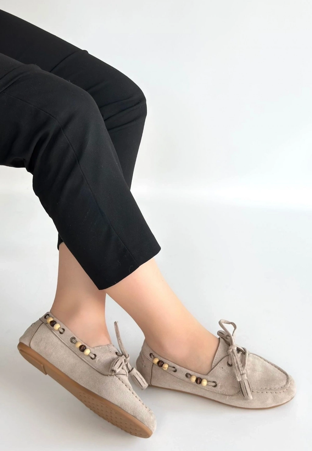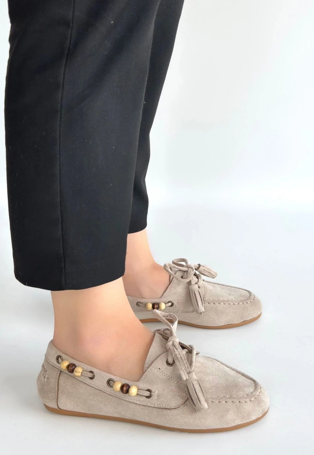 Moden Bej Süet Babae Ayakkabı