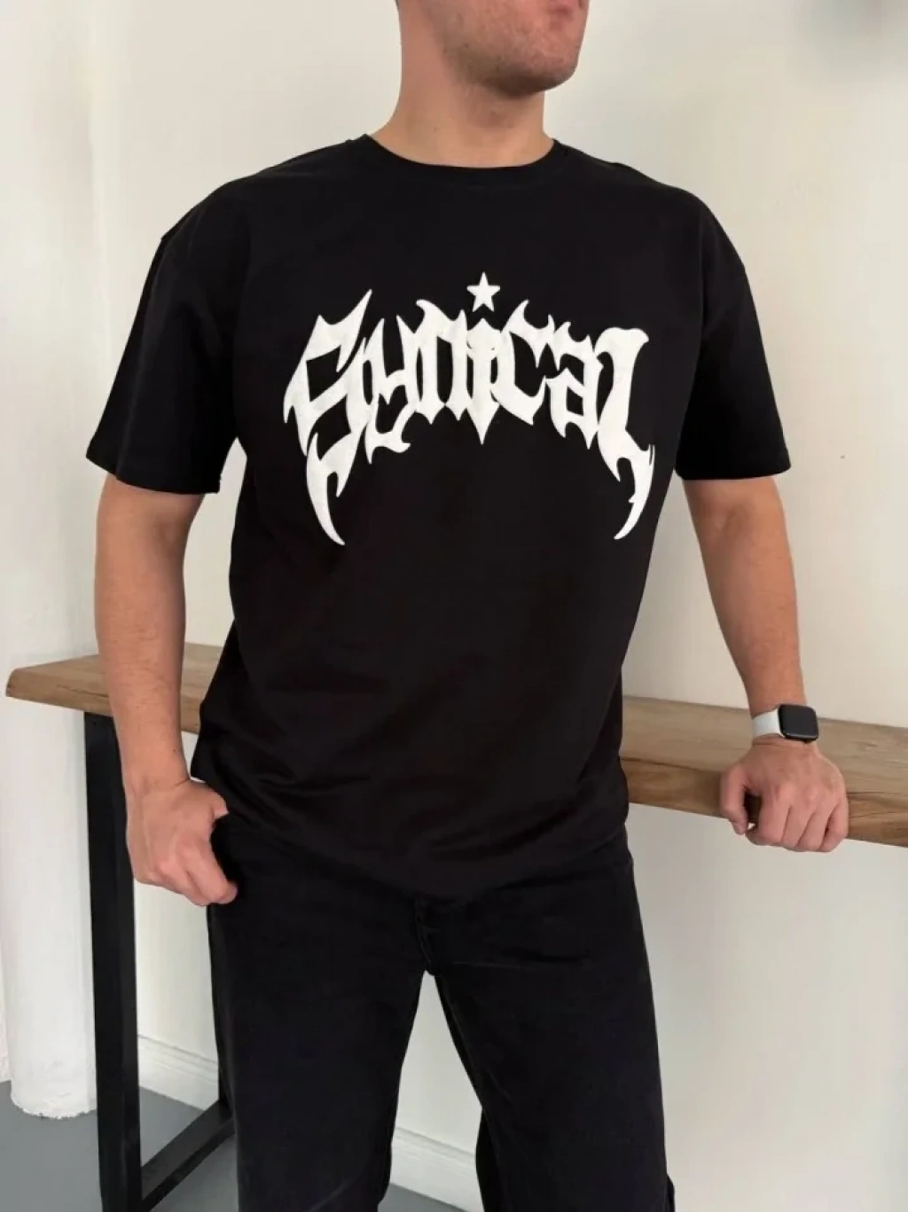 Erkek Bisiklet Yaka Ön Baskılı Kısa Kollu Tişört Streetwear Günlük Basic Pamuklu T-shirt - Siyah
