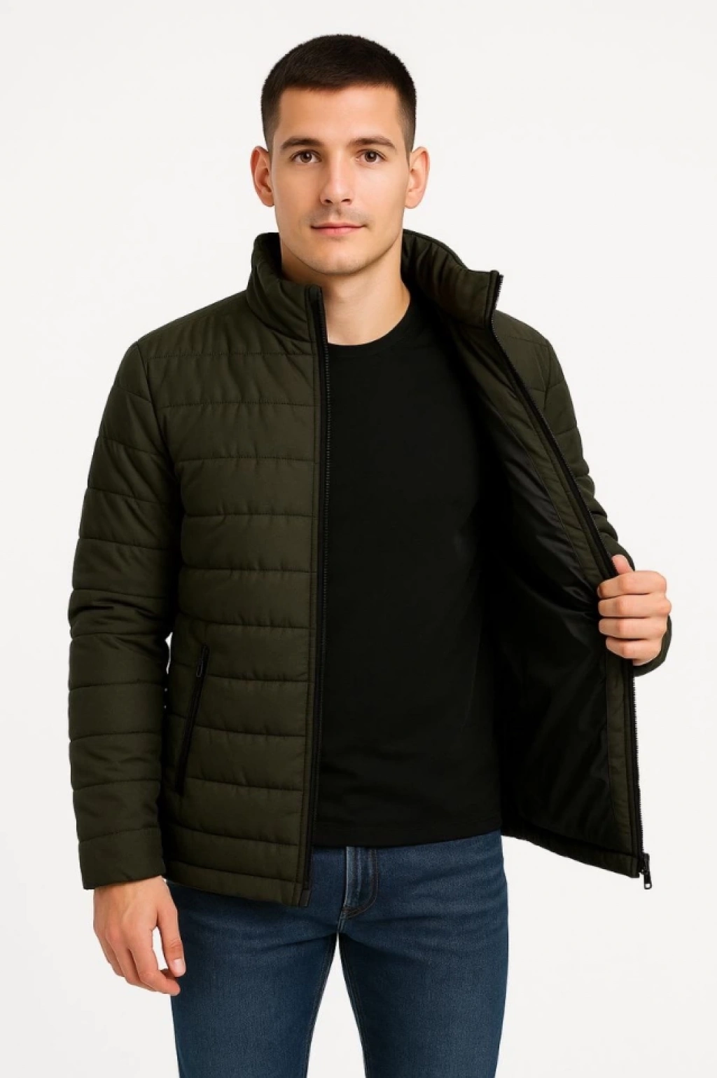 Erkek Bomber Mont Ceket – Su İtici Kumaş, Kapitone Astarlı, Fermuarlı, Kışlık - Haki