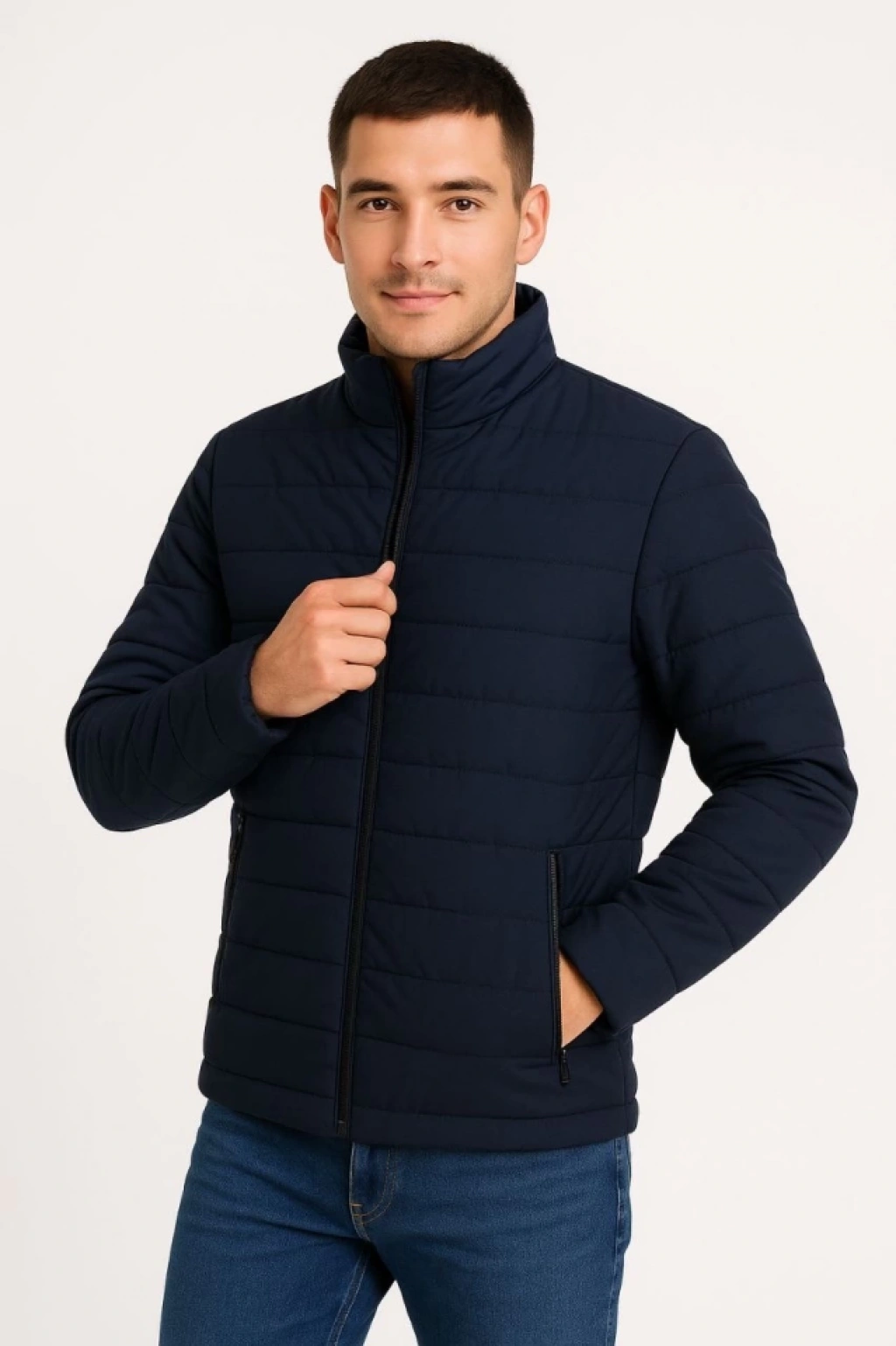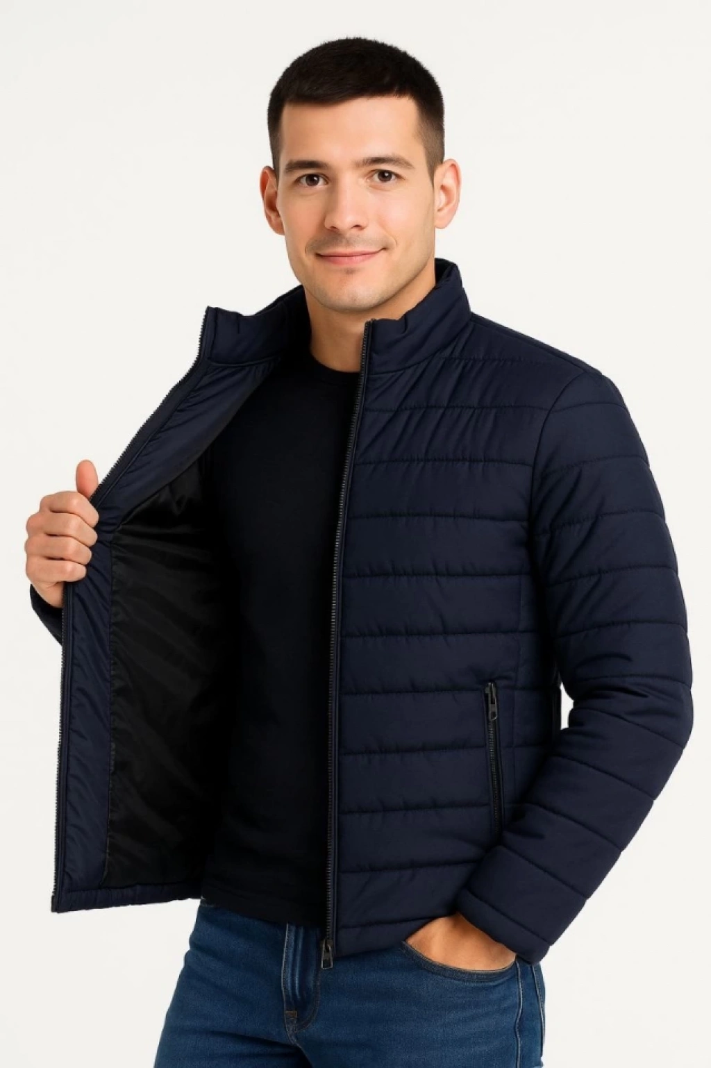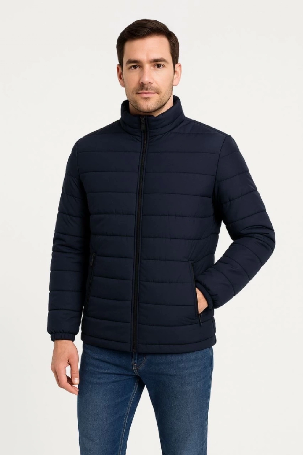 Erkek Bomber Mont Ceket – Su İtici Kumaş, Kapitone Astarlı, Fermuarlı, Kışlık - Lacivert