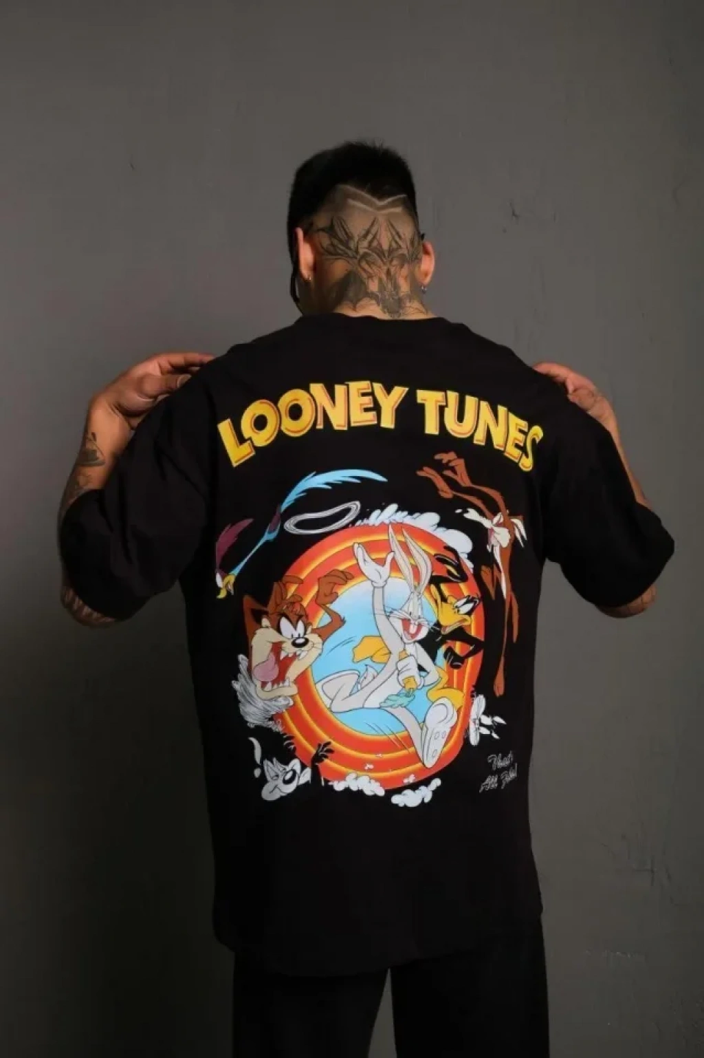 Erkek Sırt Baskılı A Kalite Oversize T-shirt - Siyah