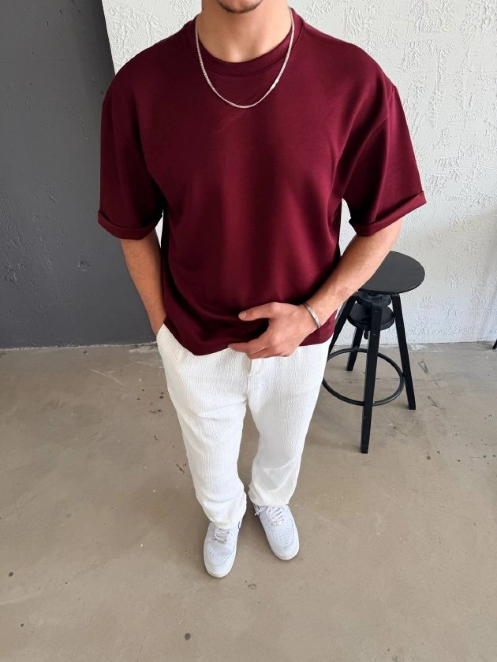 Baskılı Oversize Bisiklet Yaka T-shirt - Beyaz