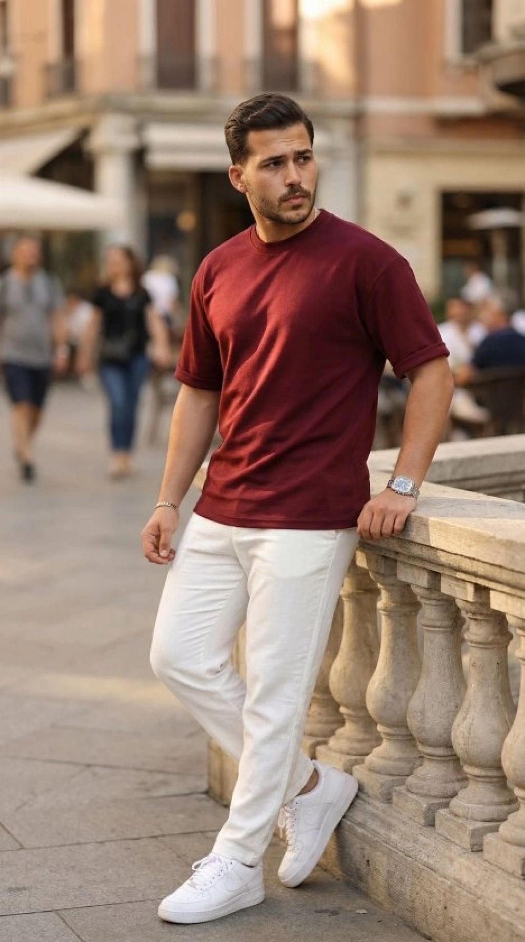 Erkek Örgü Desen Yakalı Kısa Kollu Triko Tişört - %100 Pamuk Akrilik