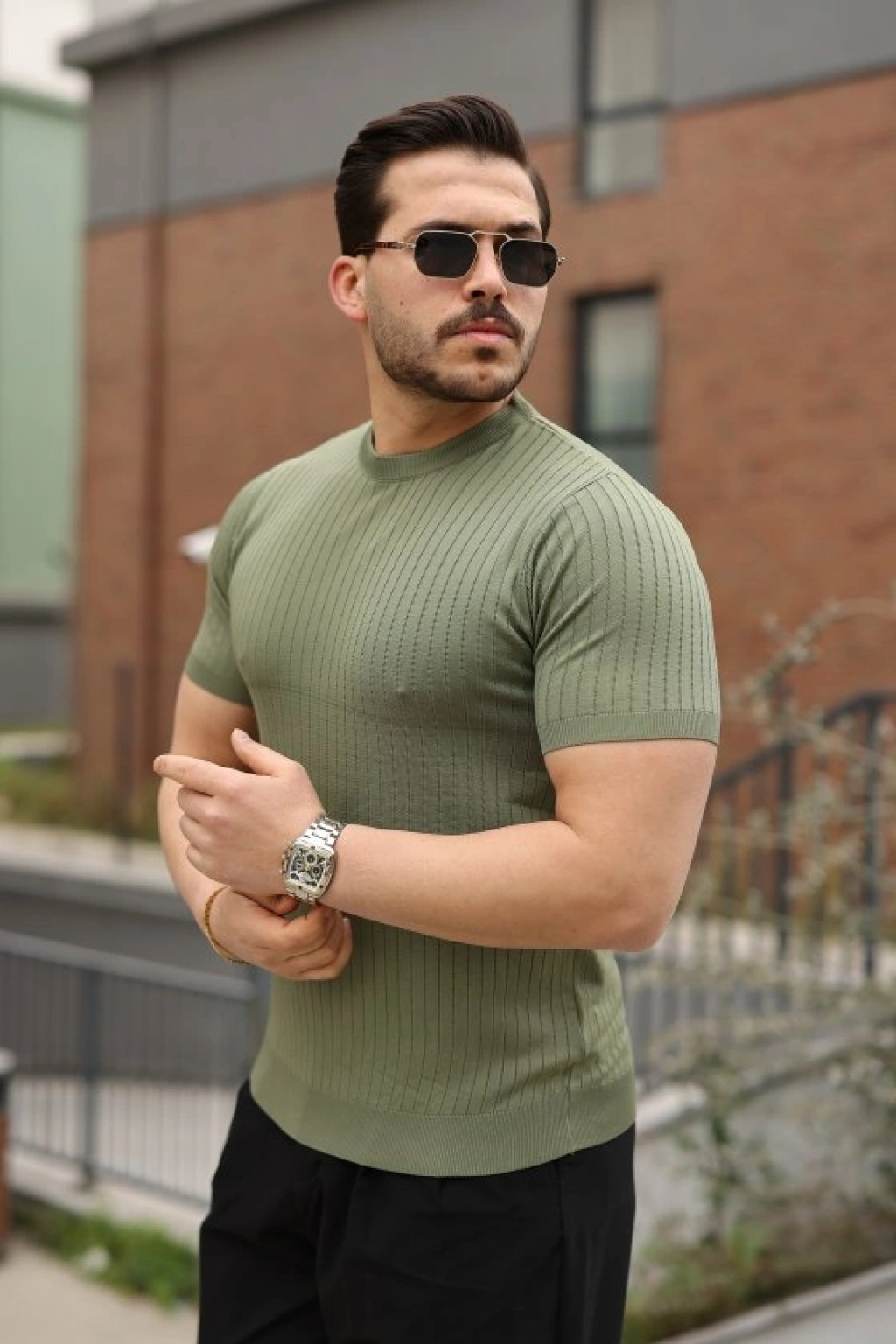 Erkek Fitilli Bisiklet Yaka Triko Tişört