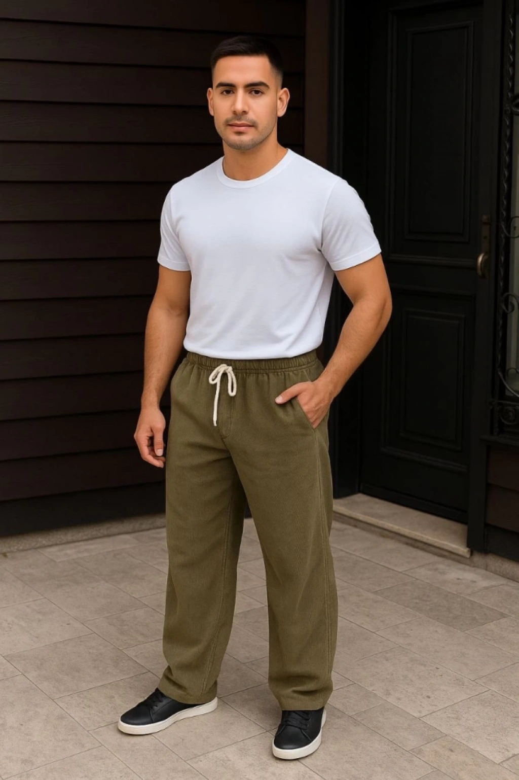 Erkek Fitilli Kadife Cepli Buggy Pantolon Oversize Rahat Kalıp - Haki