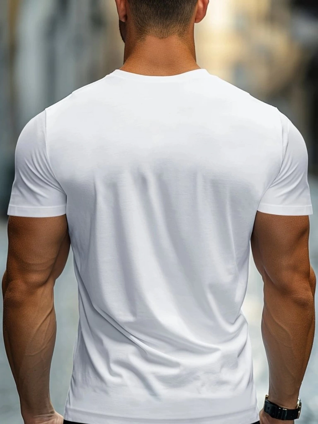 Erkek Bisiklet Yaka Baskılı Kısa Kollu Tişört Streetwear Günlük Basic Pamuklu T-shirt - Beyaz