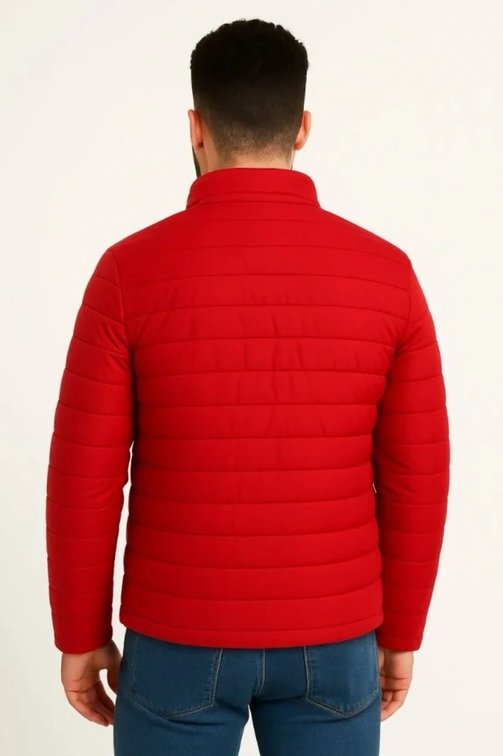 Erkek Mikro Su İtici Kapitone Baskılı Astarlı Fermuarlı Bomber Mont - Kırmızı