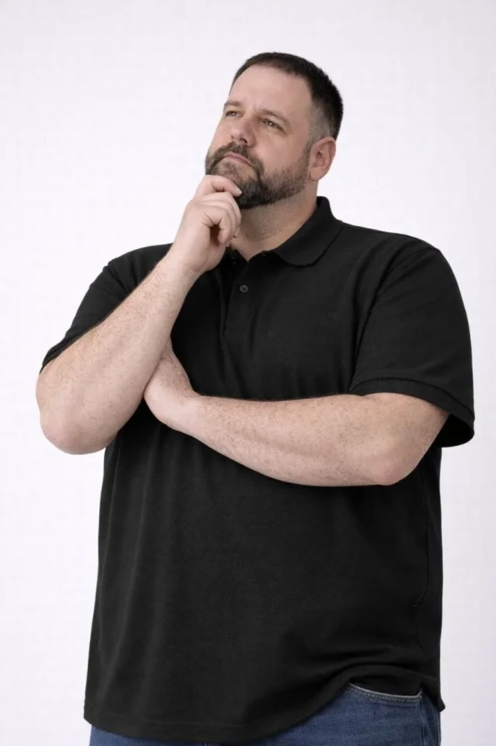 Erkek Pike Kumaş Düğmeli Yaka Battal Büyük Beden Günlük Kısa Kol Tişört T-shirt - Siyah