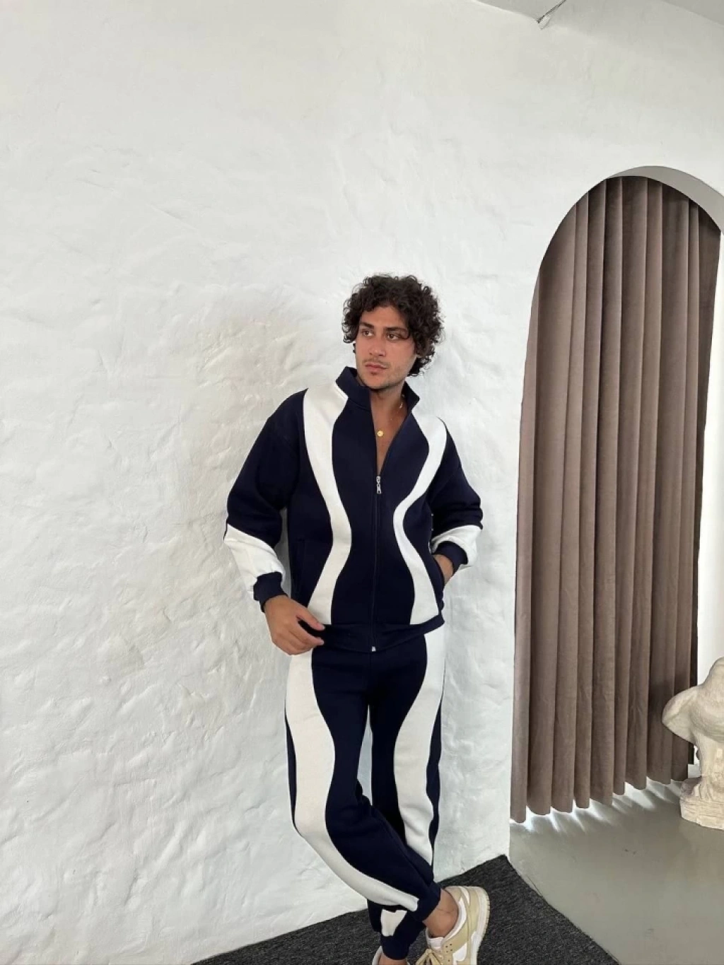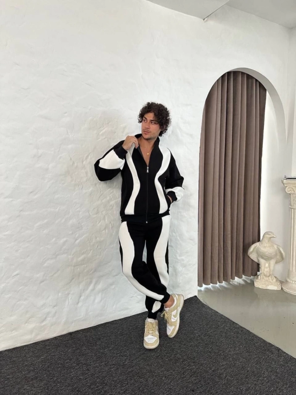 Erkek Premium Parçalı Eşofman Takım - Dik Yaka Fermuarlı Sweatshirt, - Siyah