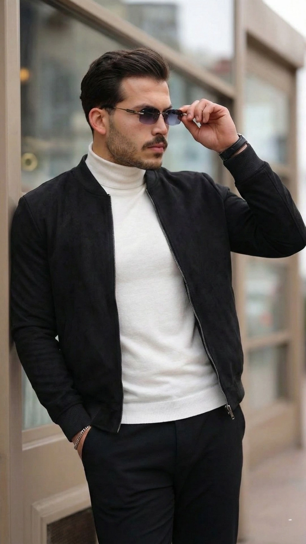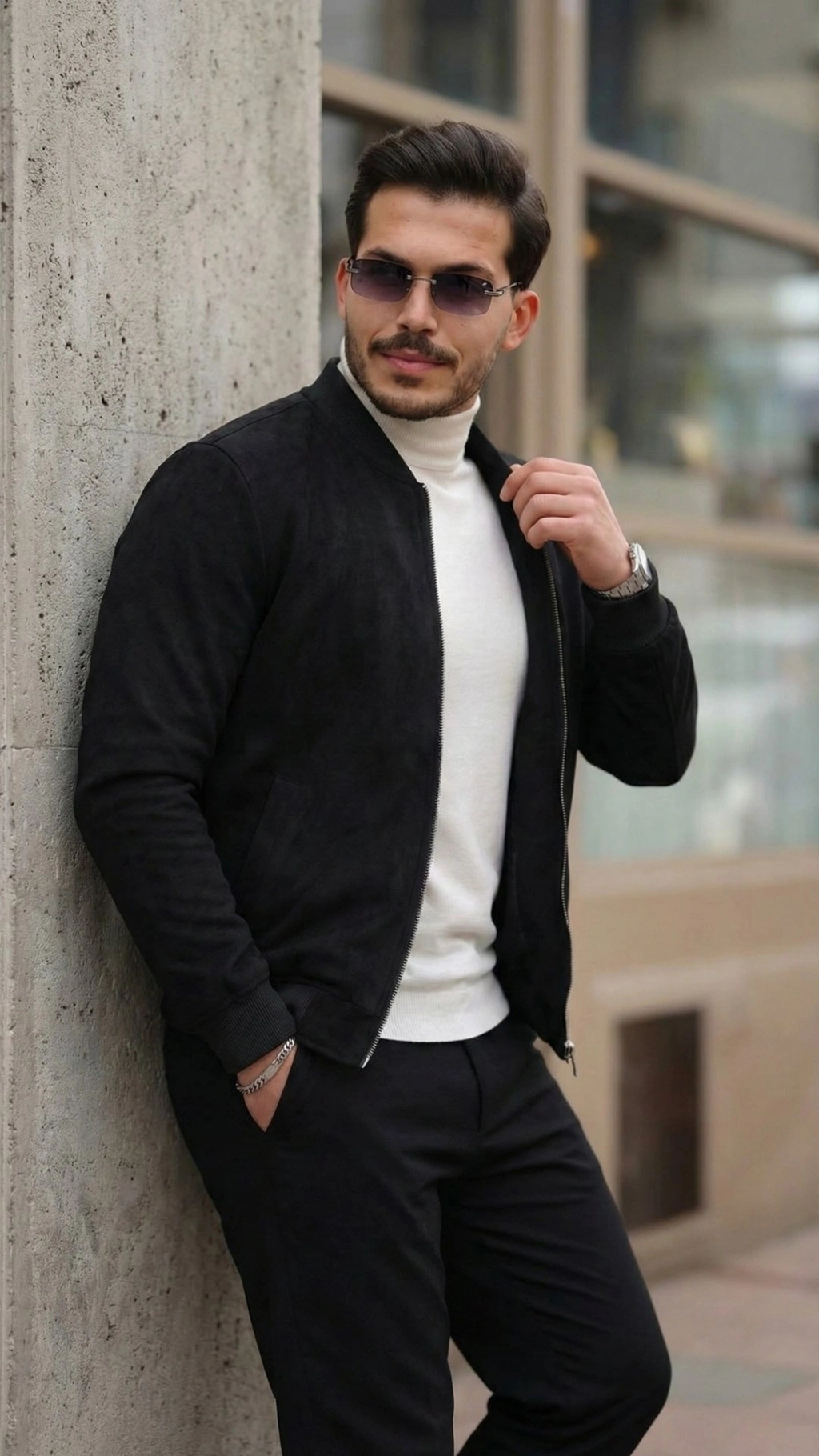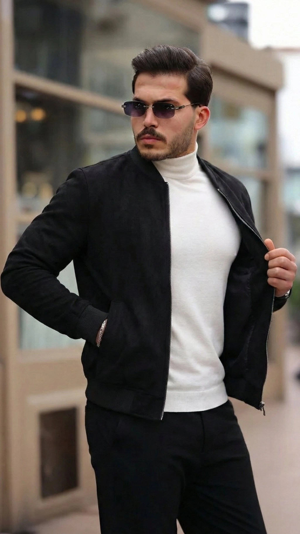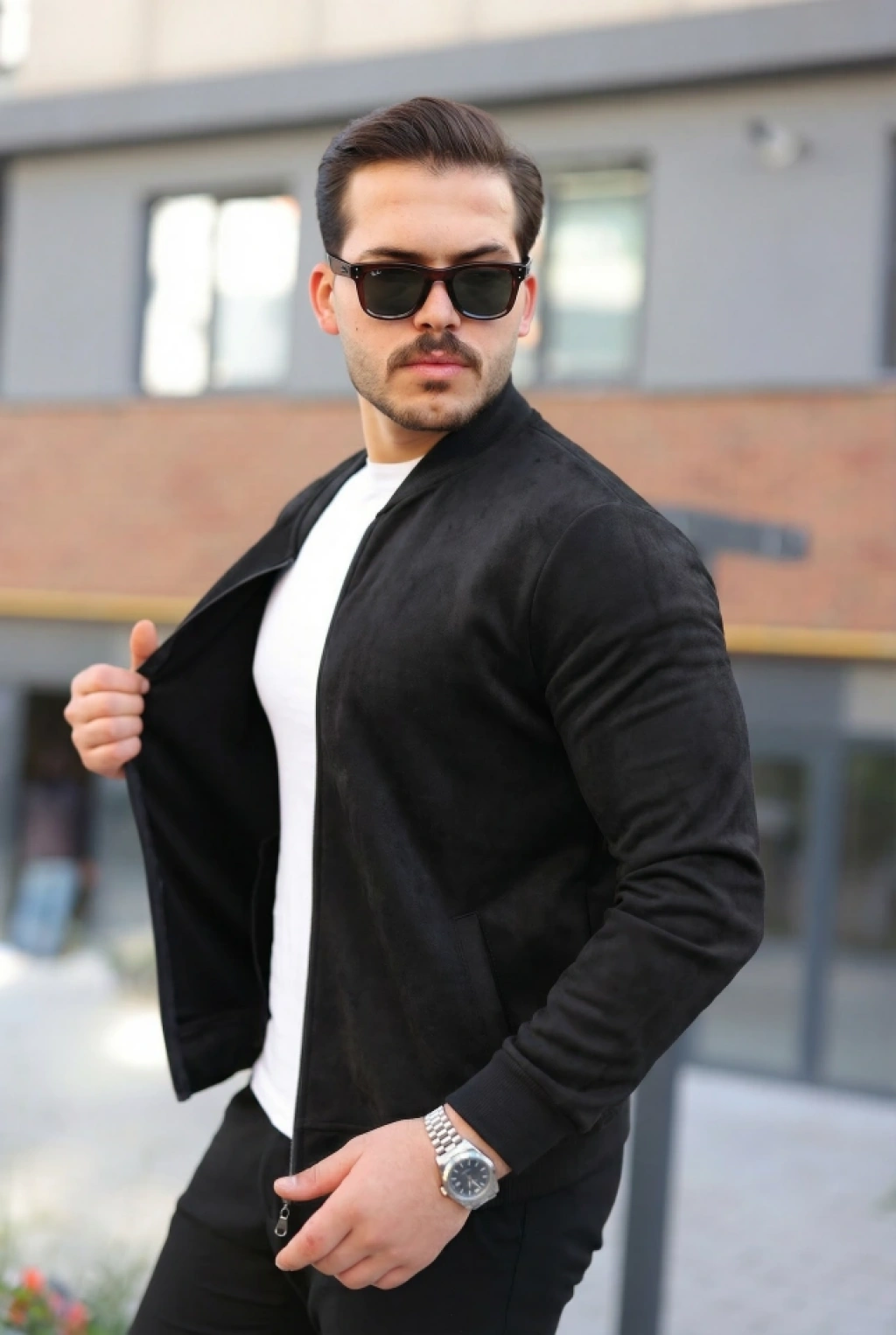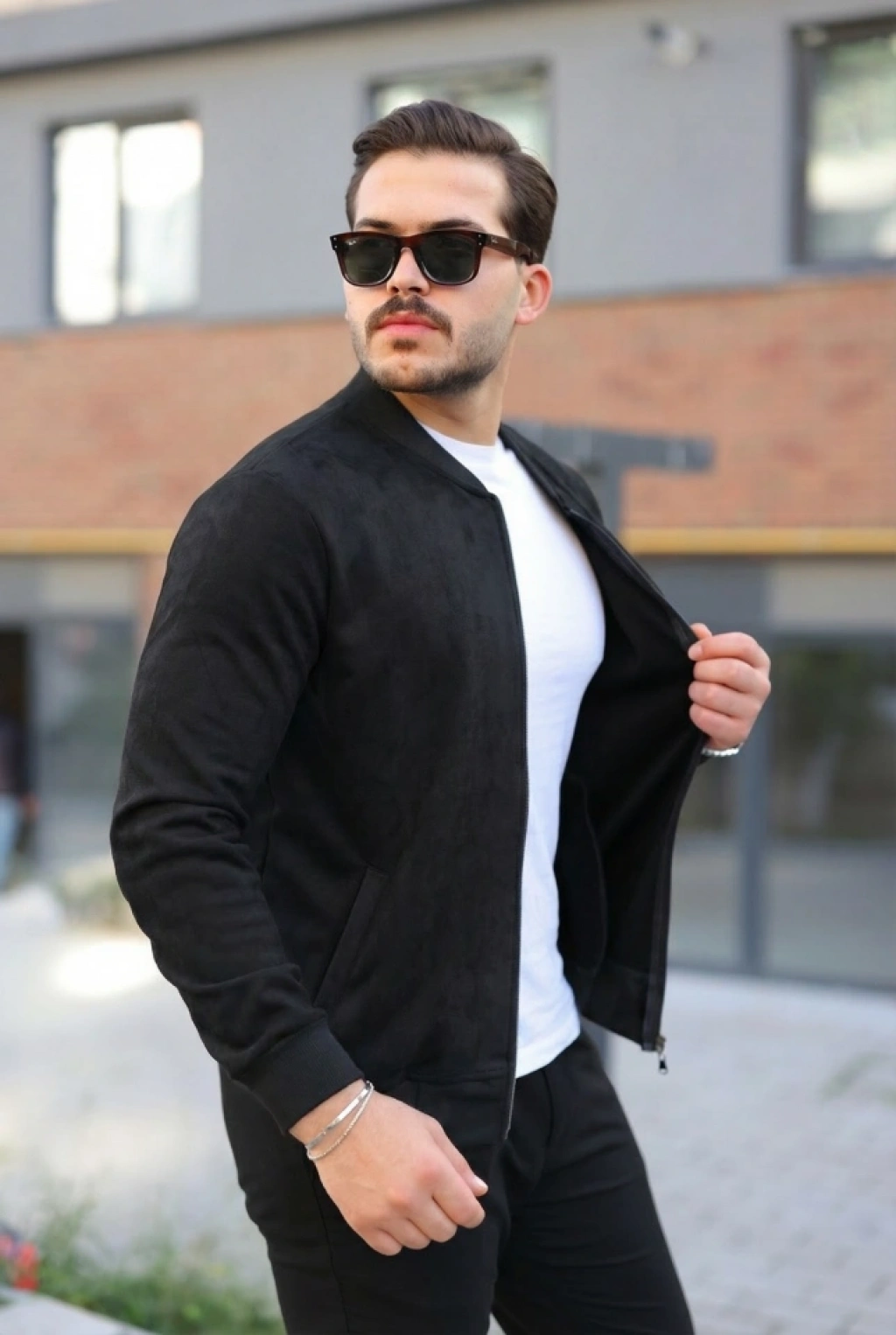 Erkek Scuba Süet Kumaş Bomber Hırka