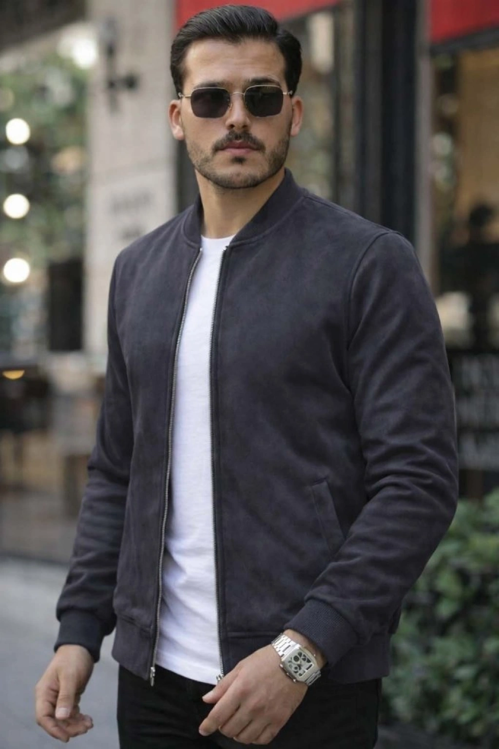 Erkek önden Fermuarlı Içi Astarlı Süet Ceket