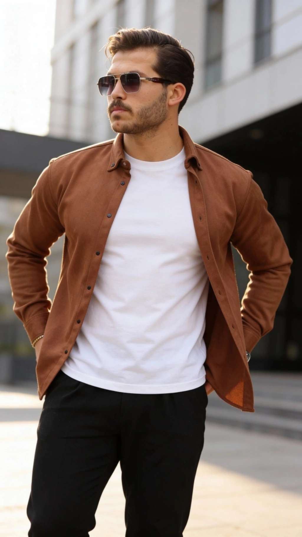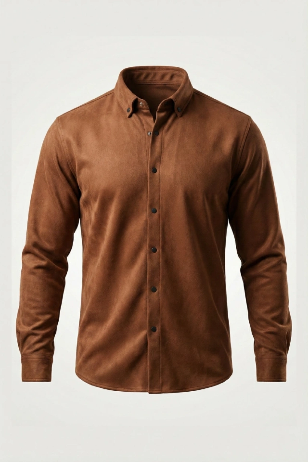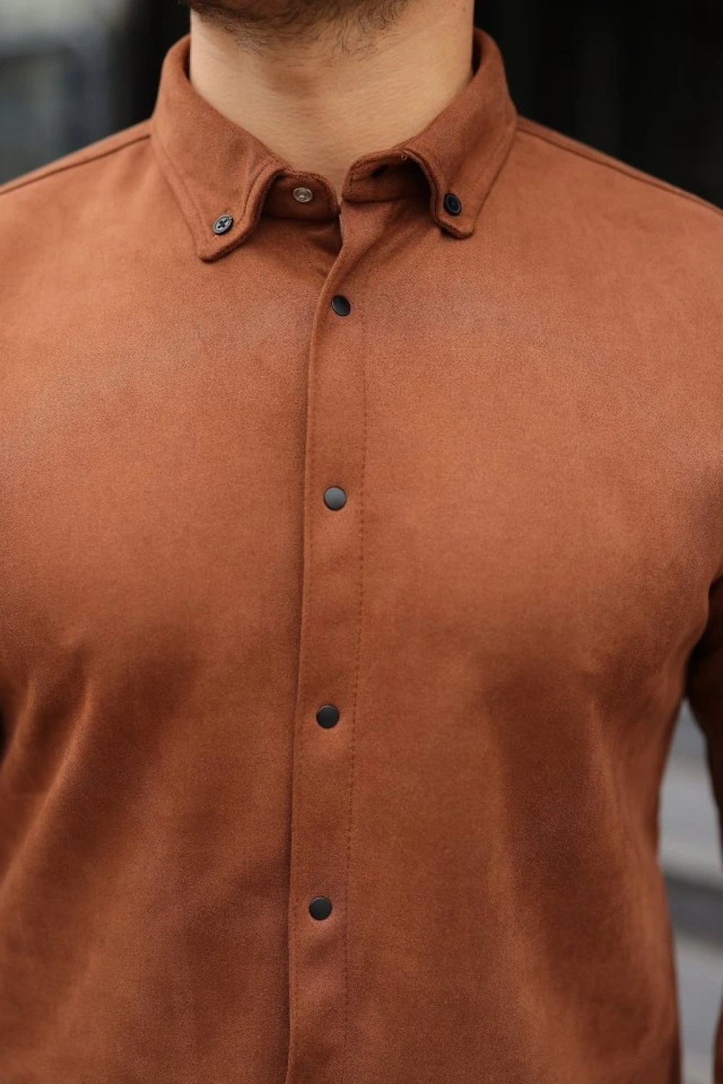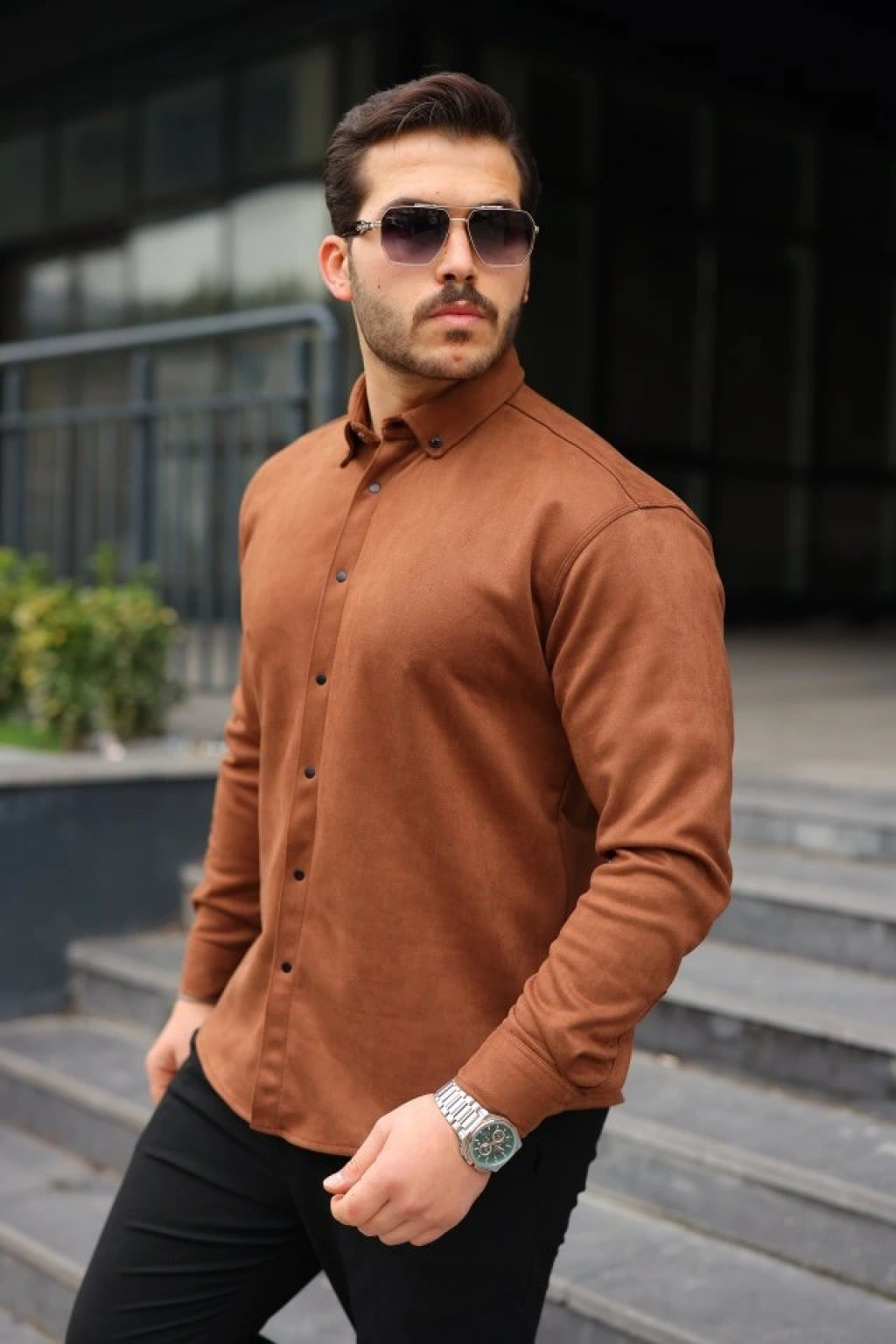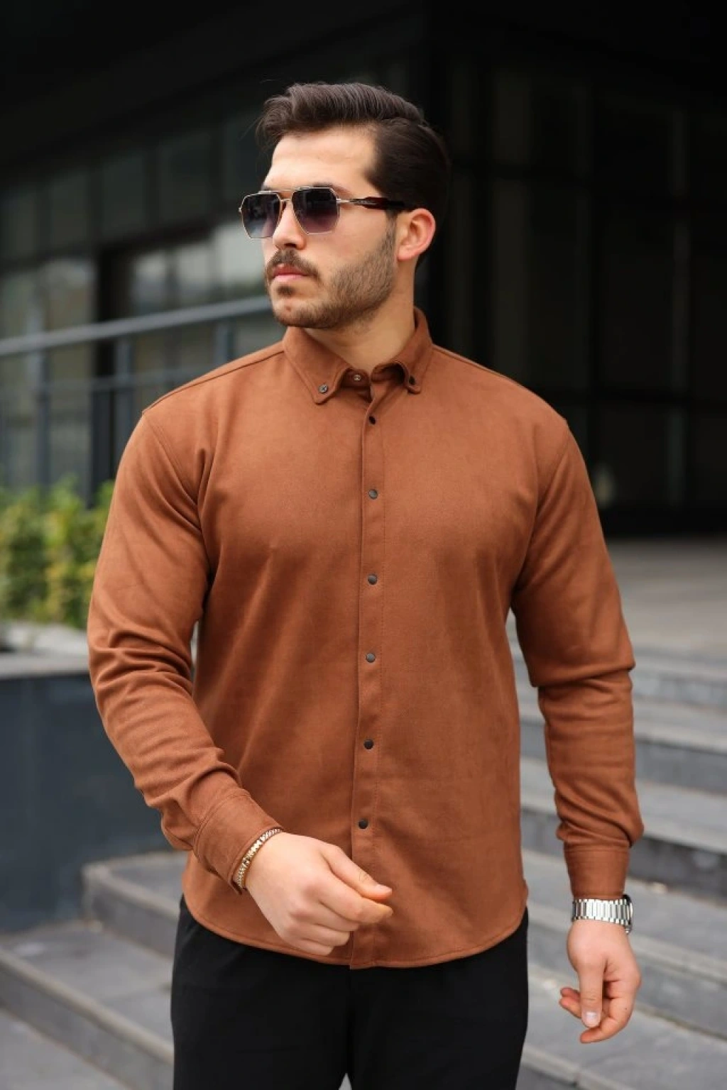Uzun Kollu Gömlek Düğmeli Klasik Yaka Günlük Ve Ofis Şıklığına Uygun - Kahverengi