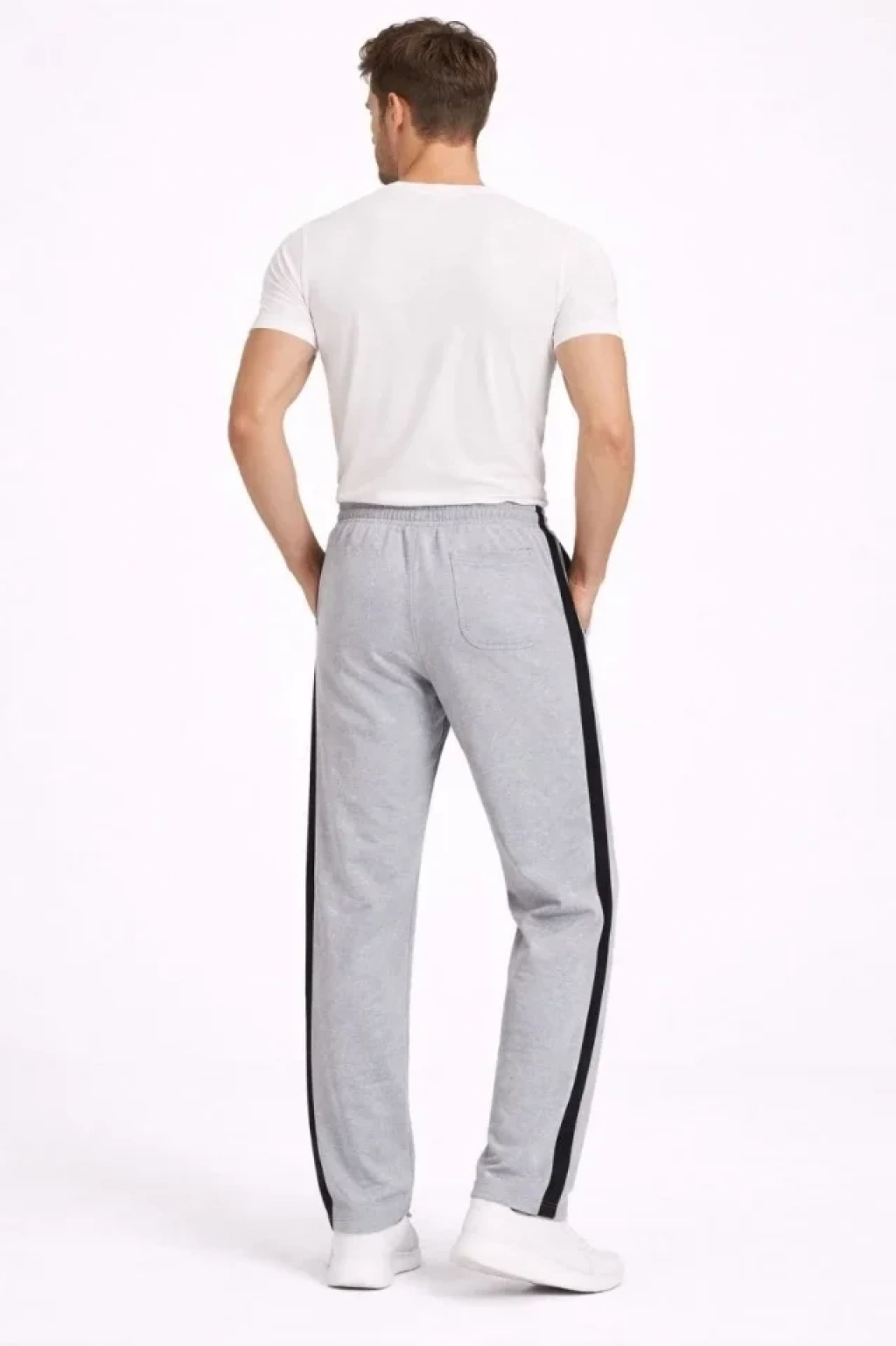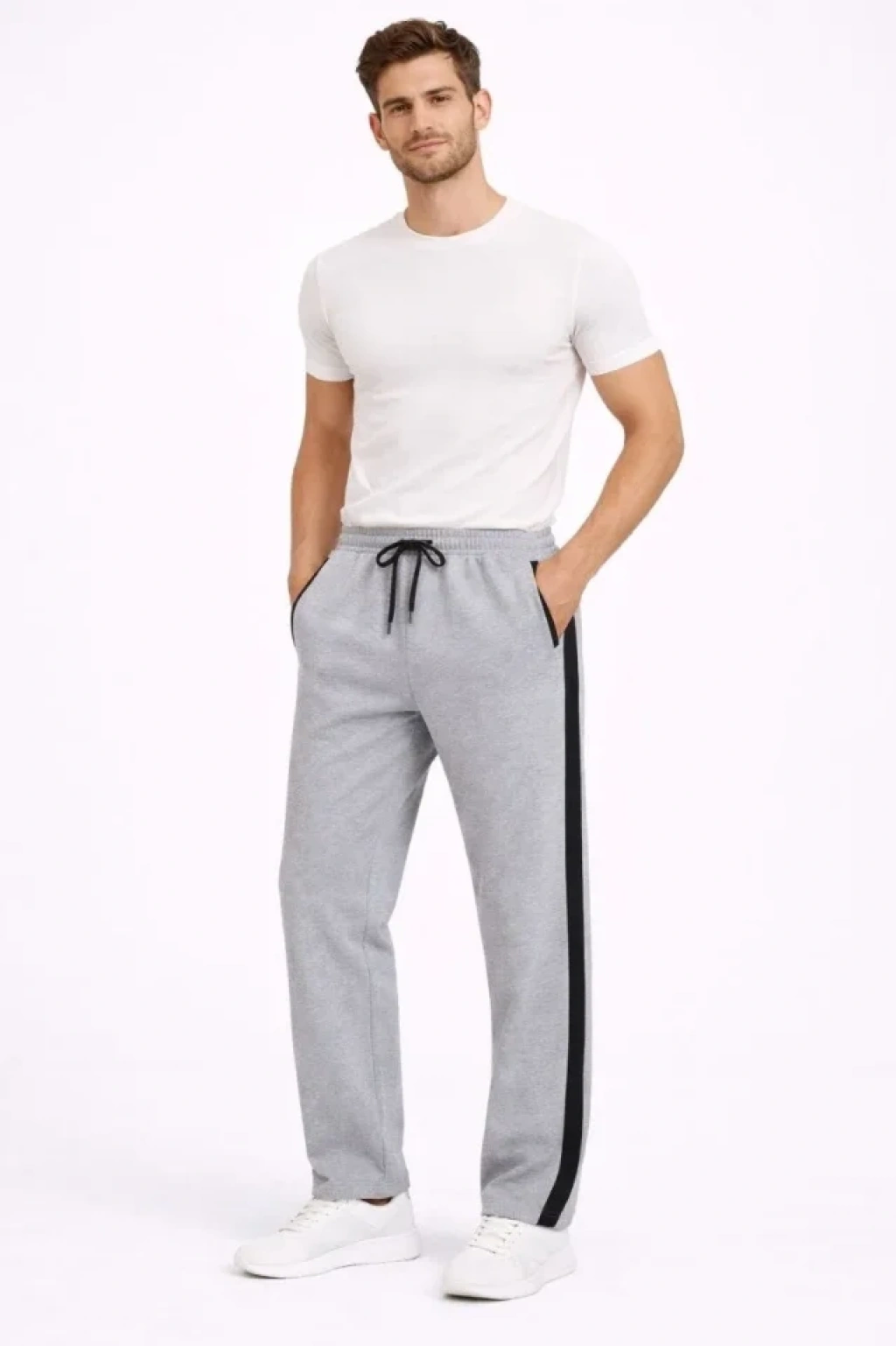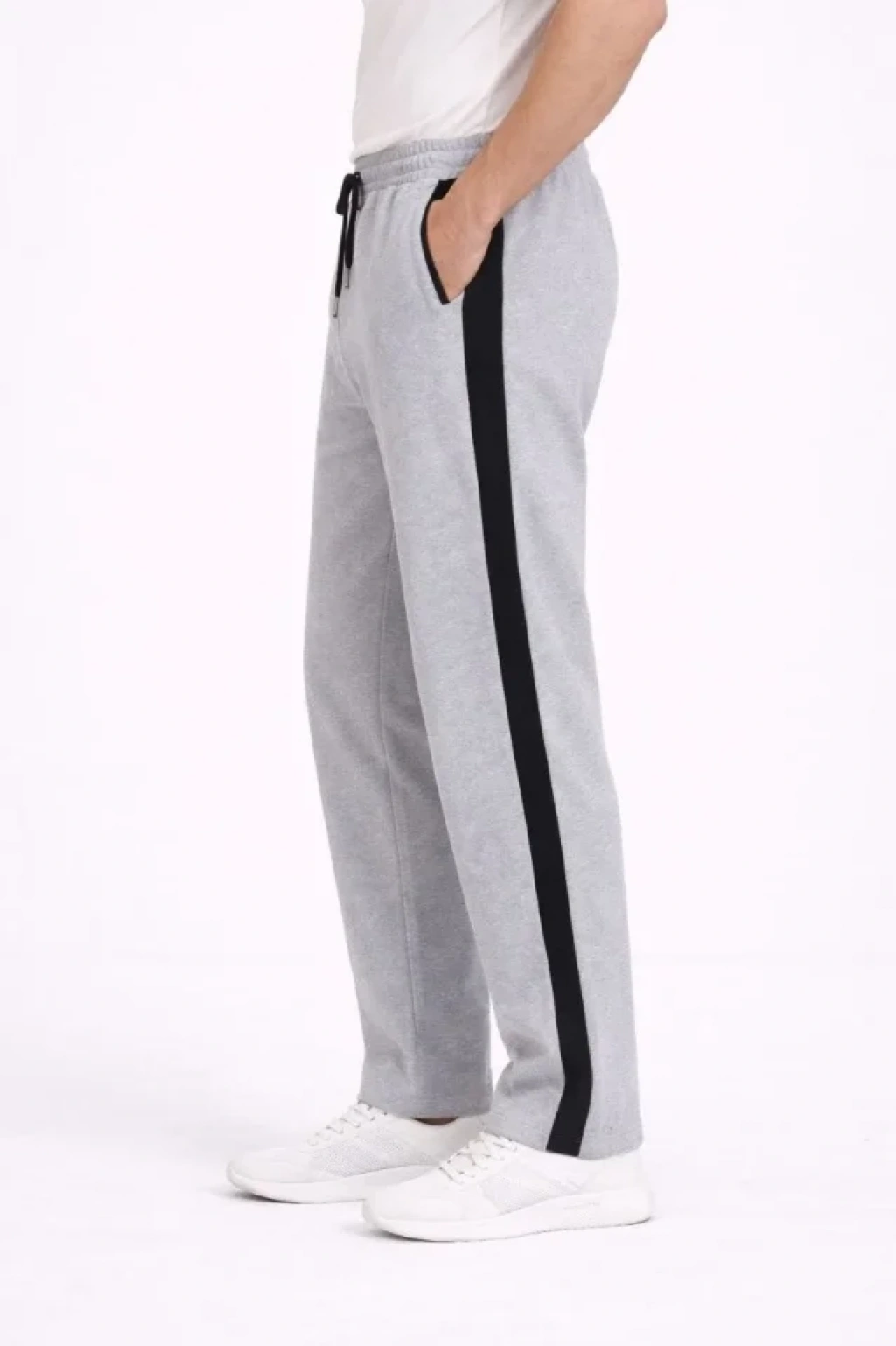 Erkek Yandan Şeritli Boru Paça Eşofman Altı 3 Iplik Pamuklu Eşofman - Gri
