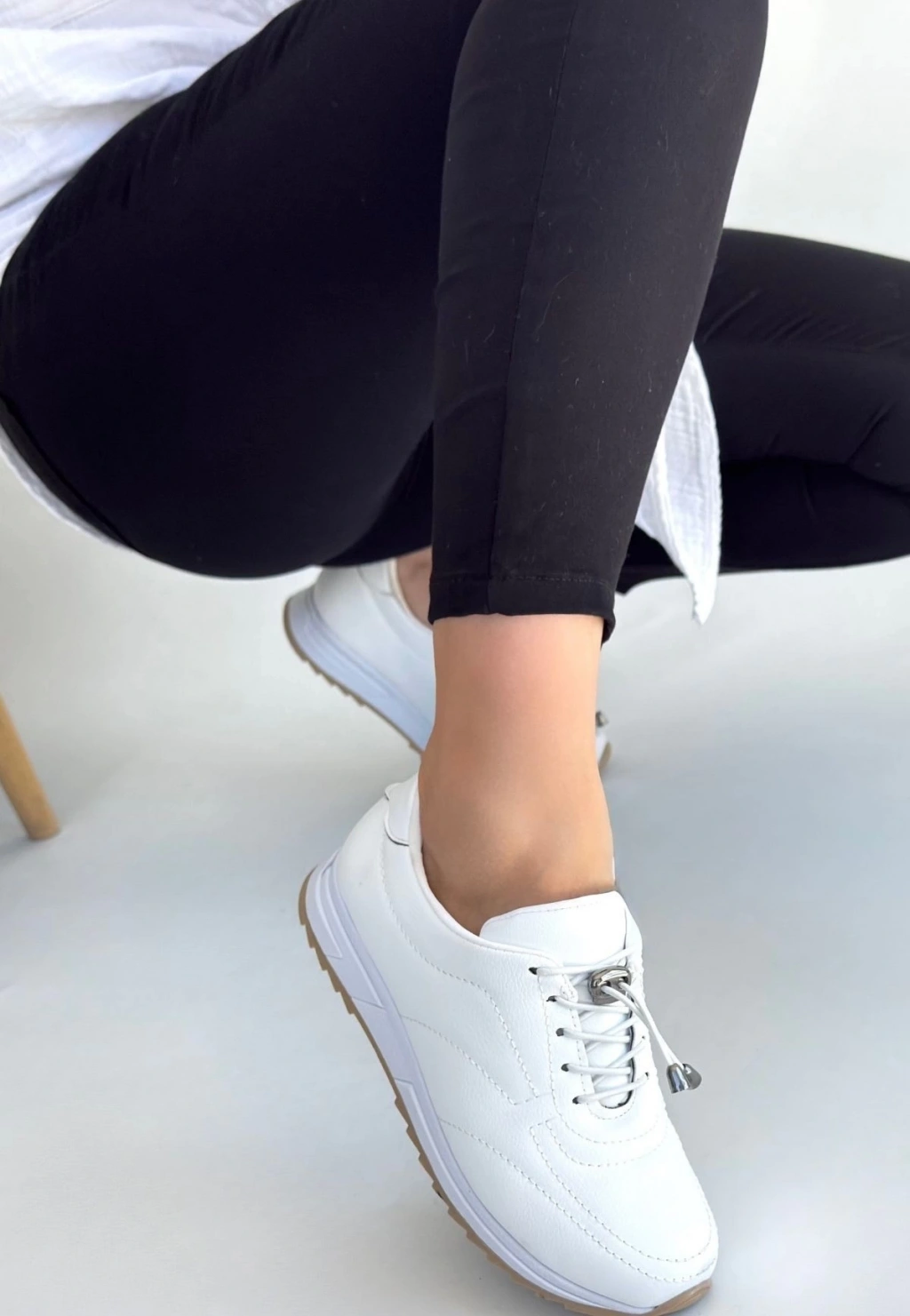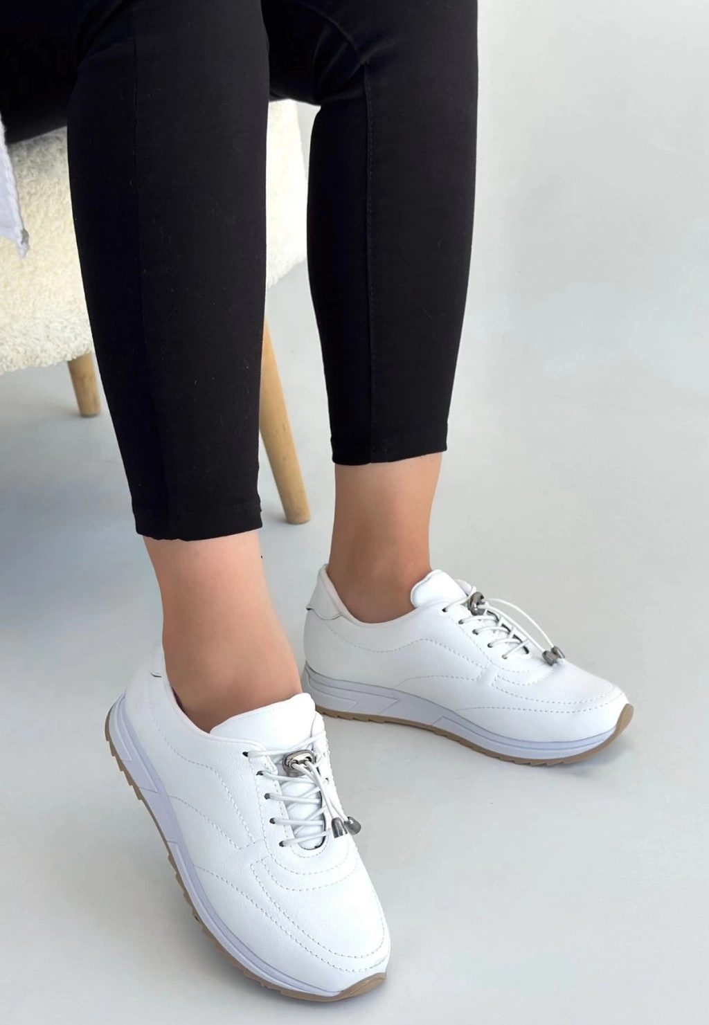 Natte Beyaz Cilt Bağcıklı Spor Ayakkabı