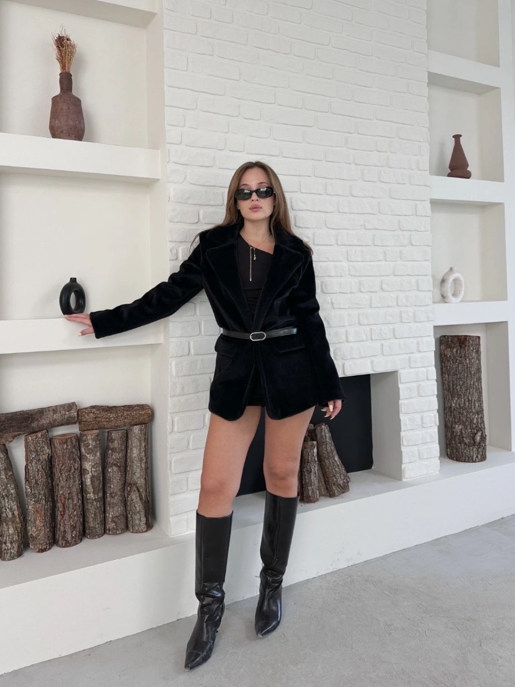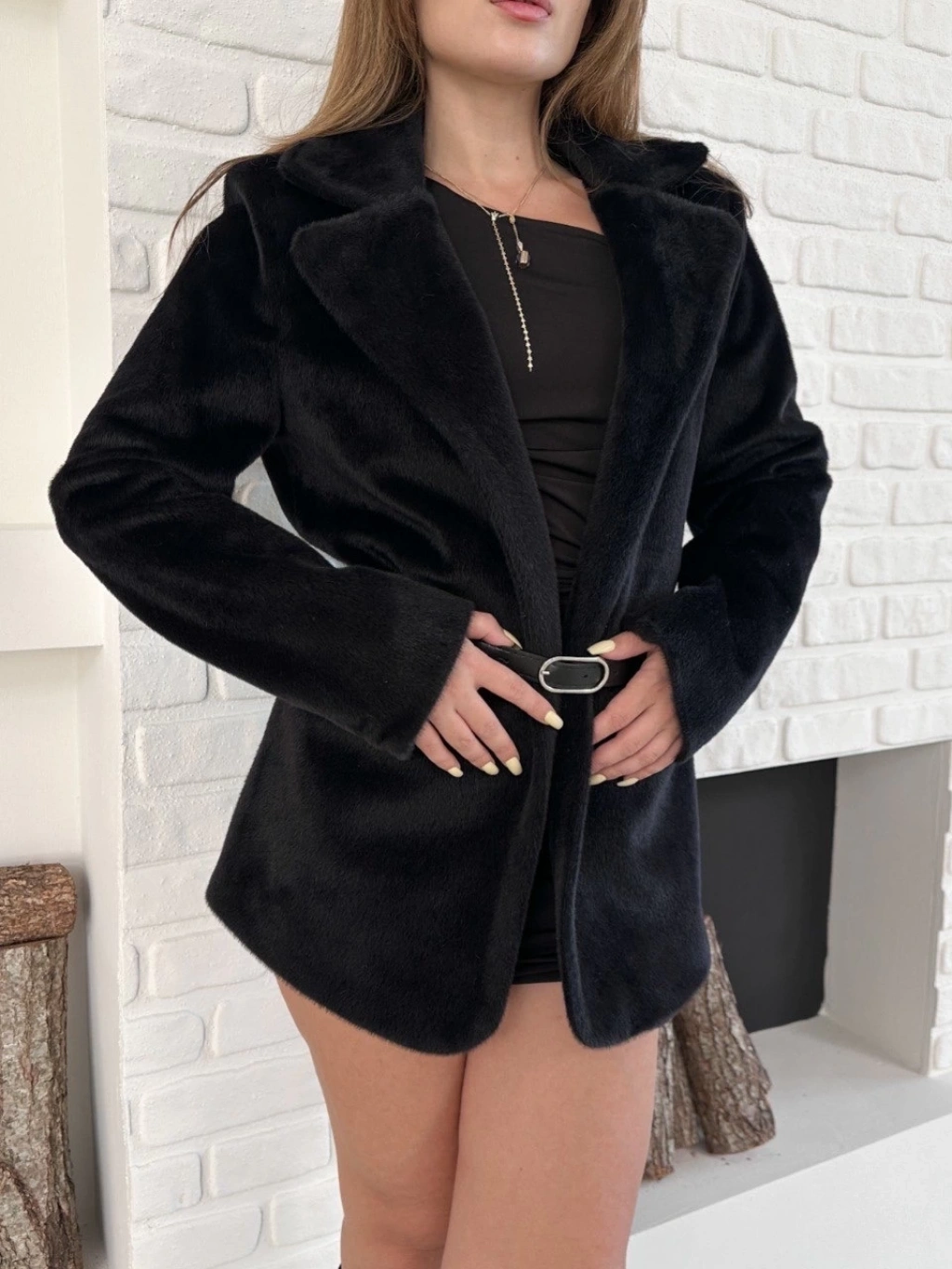 Kalpli peluş ceket içi astarlı siyahbeyaz