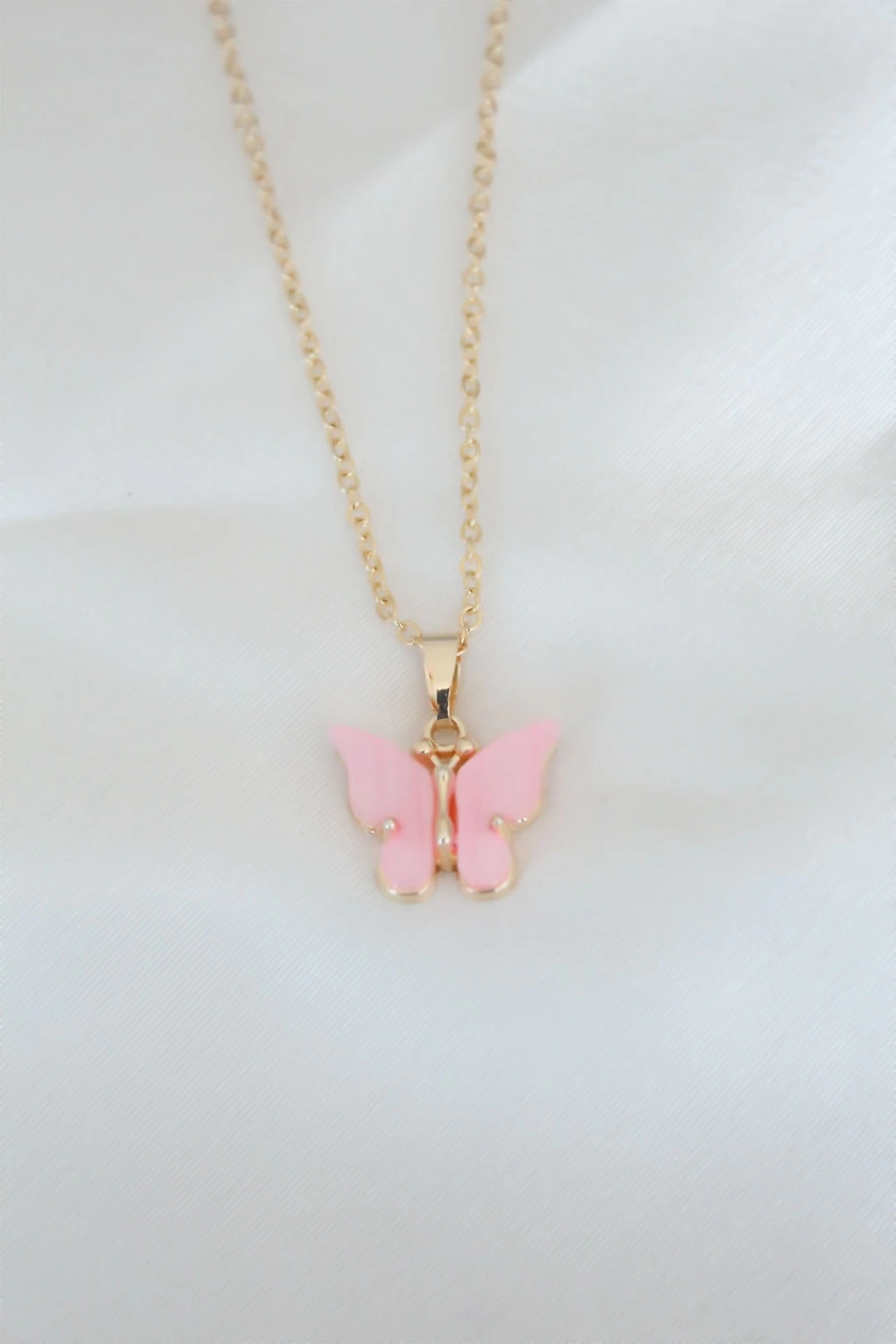 Gold Kaplama Pembe Sedefli Kelebek Kolye