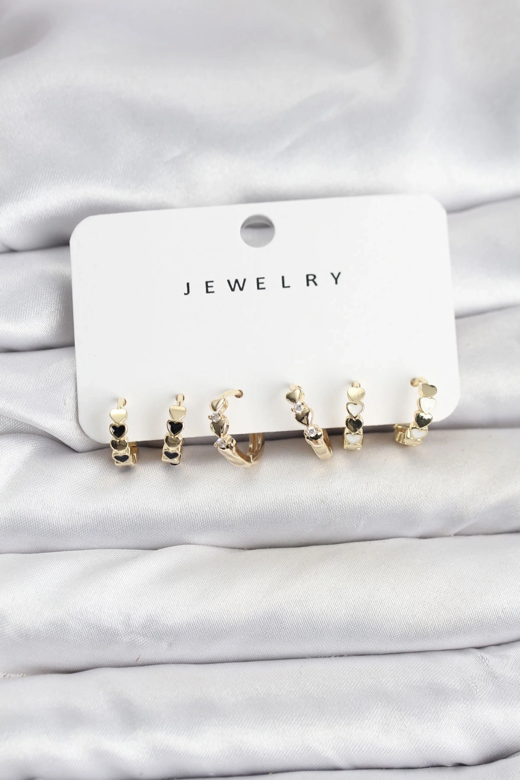 Gold Renk Pirinç Minimal Kalp Detaylı Kadın Küpe Seti