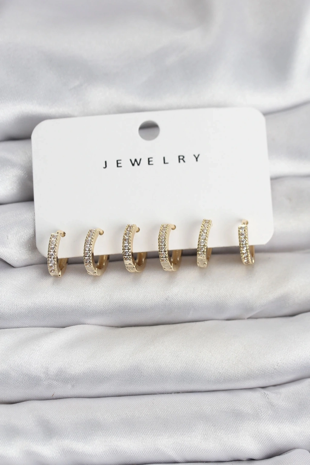Gold Renk Pirinç Zirkon Taşlı Halka Kadın Küpe Seti
