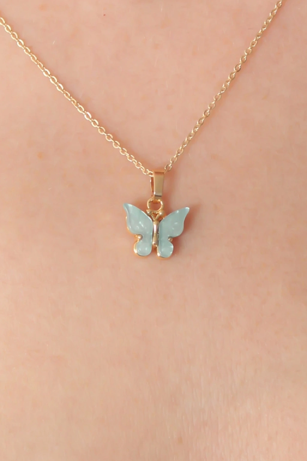 Gold Renk Su Yeşili Kelebek Figür Kadın Kolye