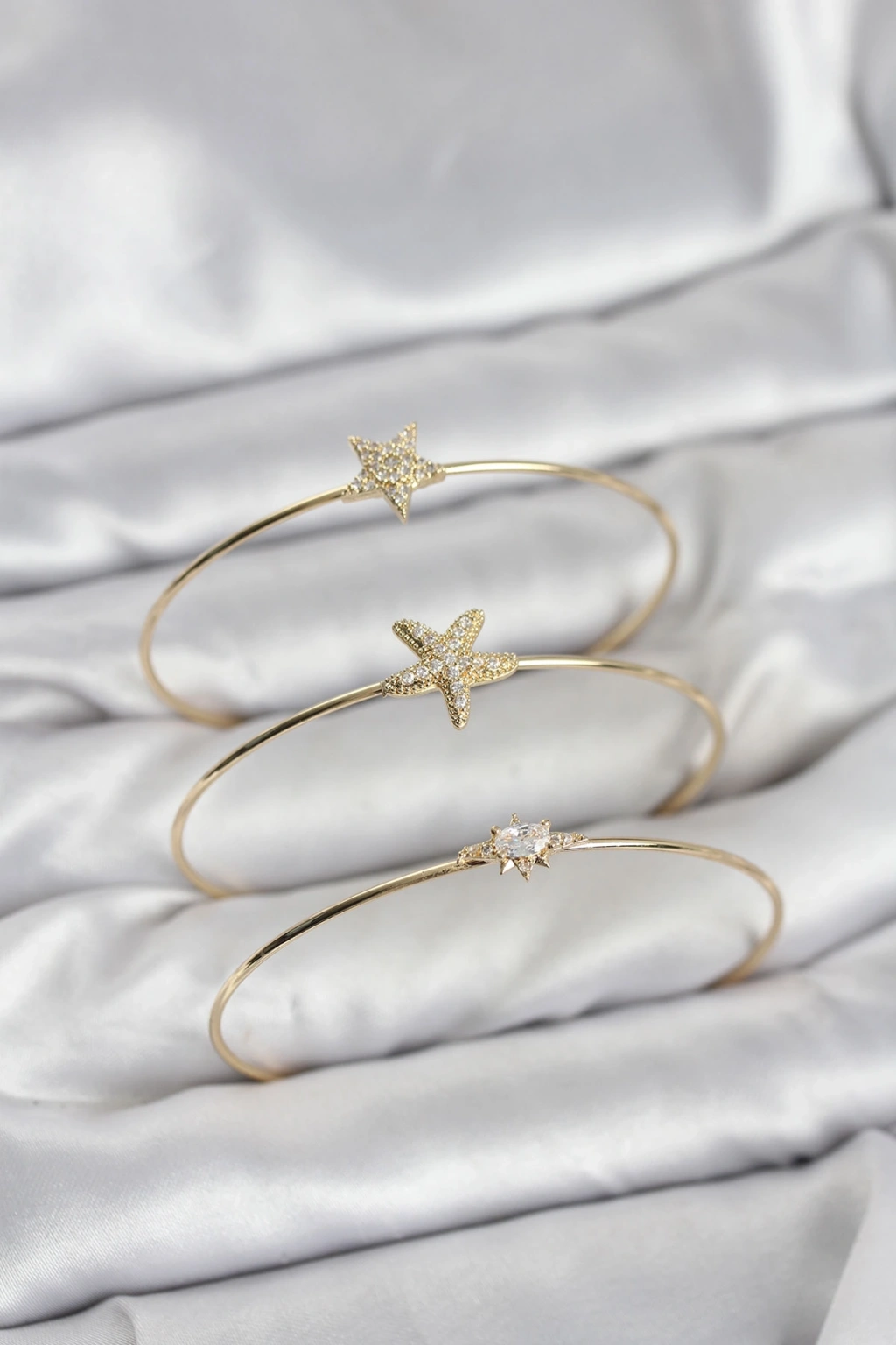 Gold Renk Zirkon Taşlı Deniz Yıldızı Model 3'lü Kadın Bileklik Kombini