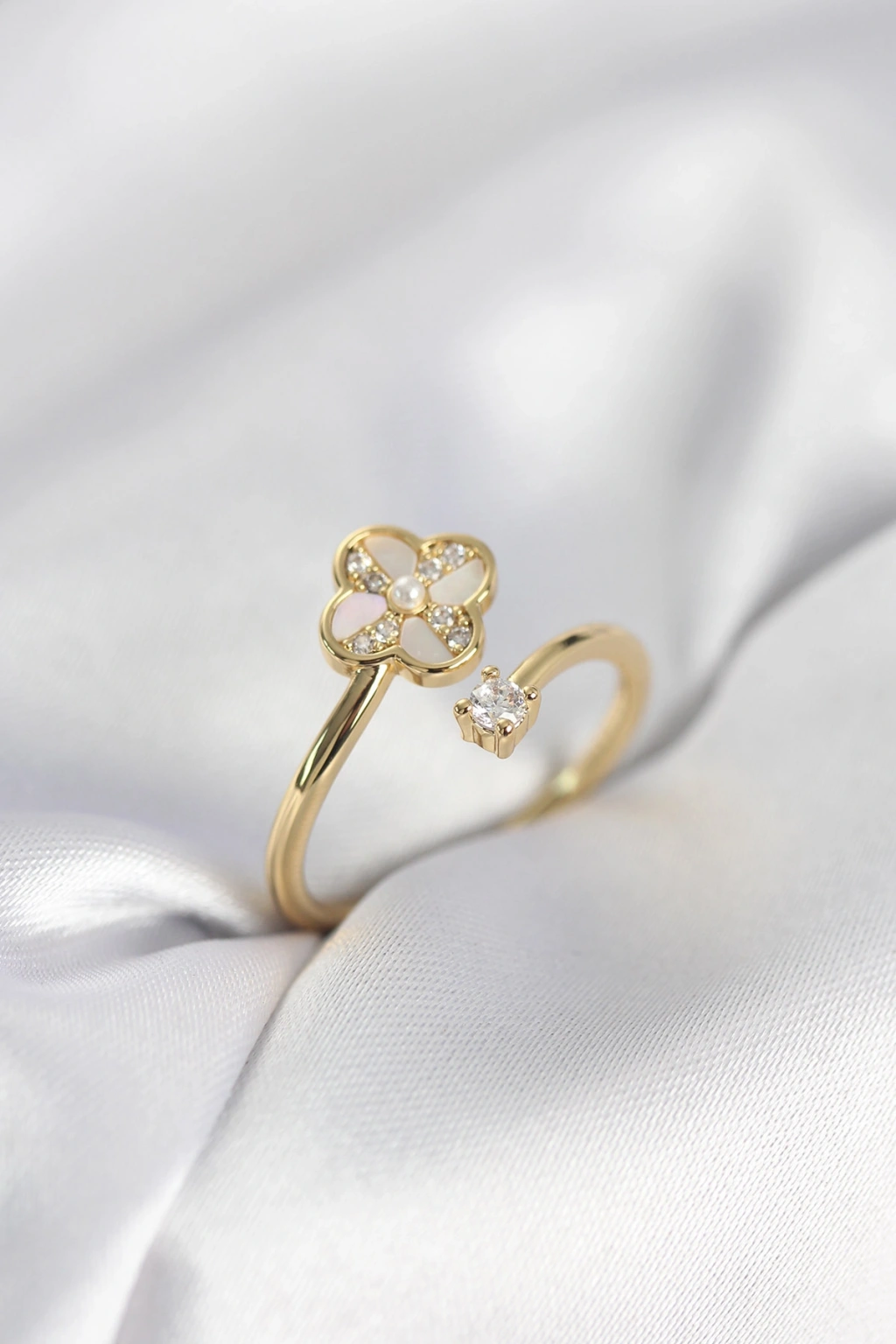 Gold Renk Zirkon Taşlı Yonca Model Kadın Yüzük