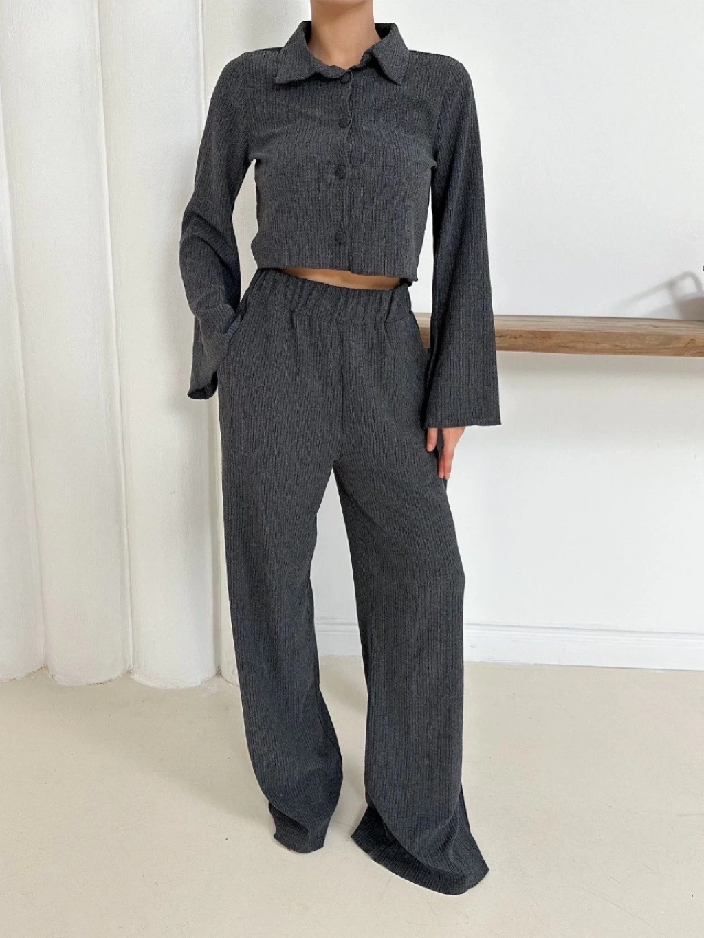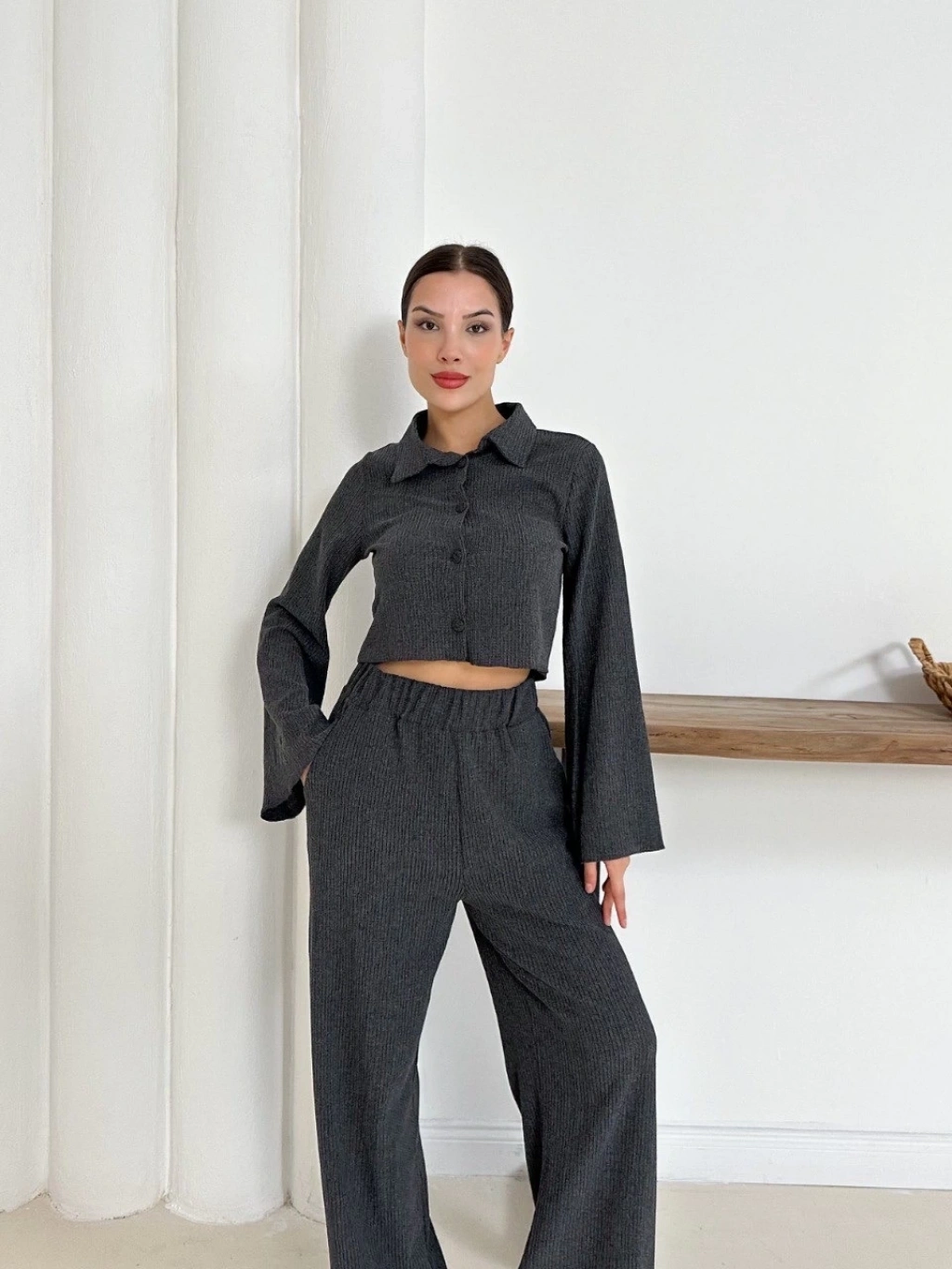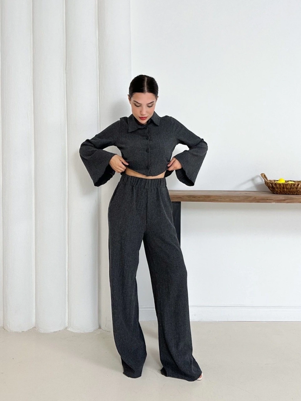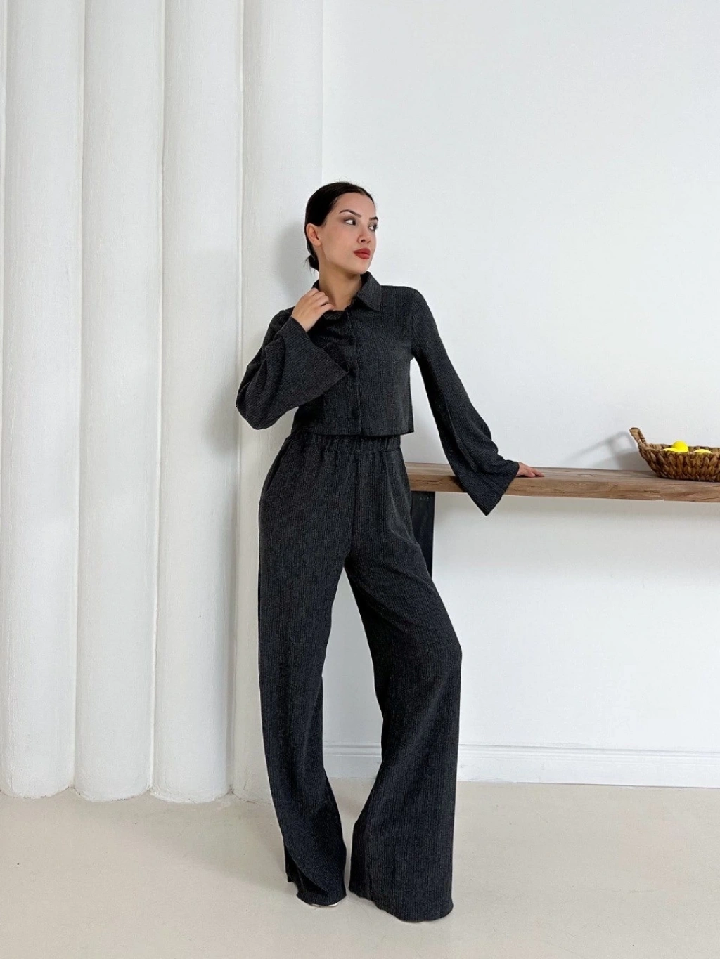 Gömlek Yaka Fitilli Salaş İkili Takım siyah T4300