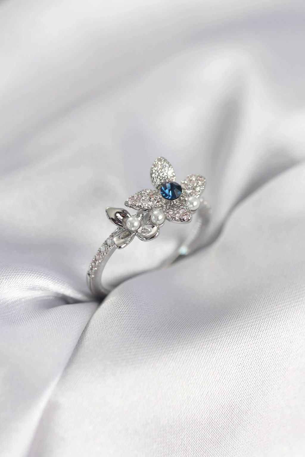 Gümüş Renk Çiçek Model Zirkon Taşlı Kadın Yüzük