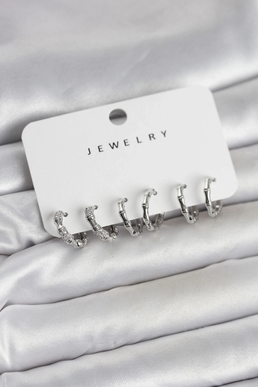 Gümüş Renk Pirinç Kemik Model 3 Çift Kadın Küpe Seti