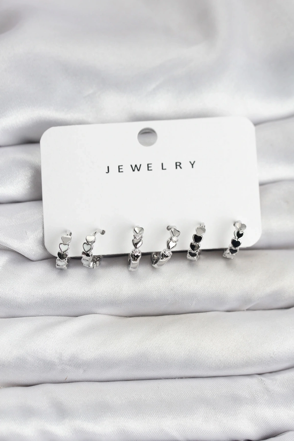 Gümüş Renk Pirinç Minimal Kalp Detaylı Kadın Küpe Seti