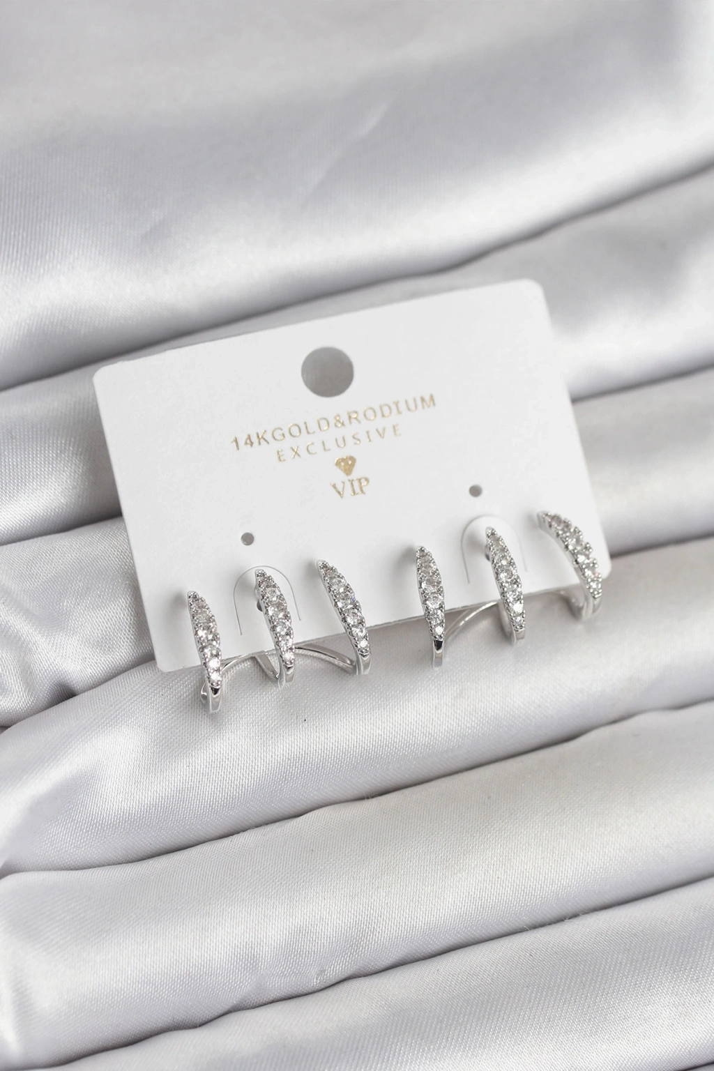 Gümüş Renk Pirinç Zirkon Taşlı Kadın Küpe