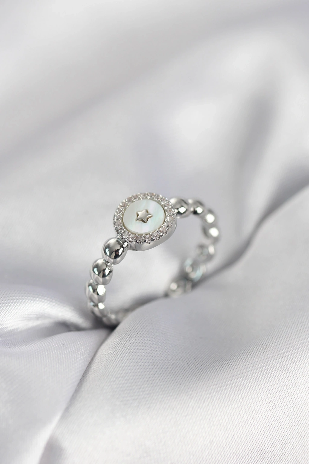 Gümüş Renk Sedefli Yıldız Model Zirkon Taşlı Kadın Yüzük