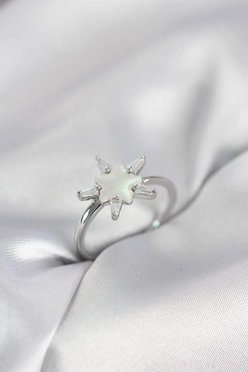 Gümüş Renk Yıldız Model Sedefli Zirkon Taşlı Kadın Yüzük