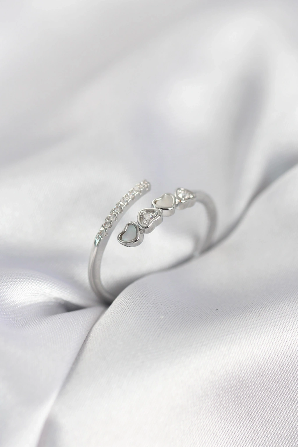 Gümüş Renk Zirkon Taşlı Minimal Kalp Model Kadın Yüzük