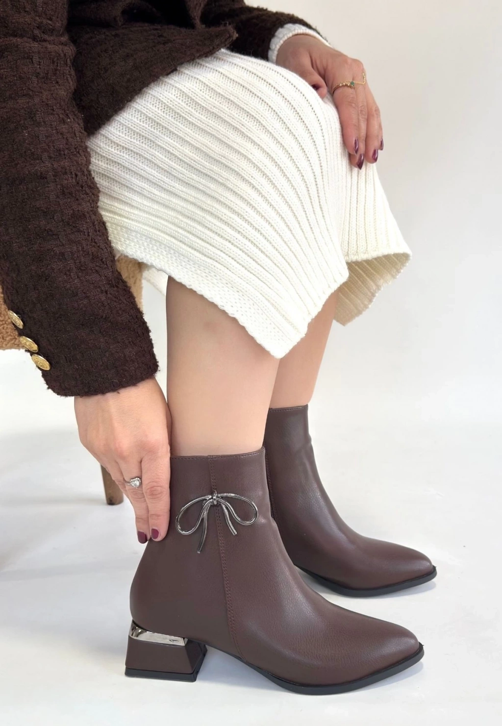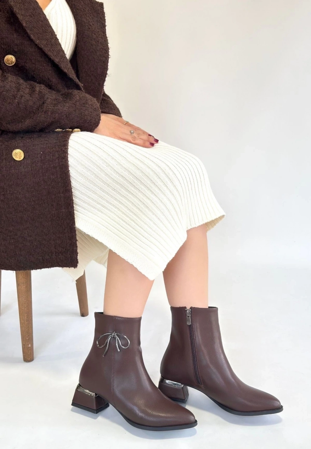 Orjen Kahverengi Cilt Streç Topuklu Bot