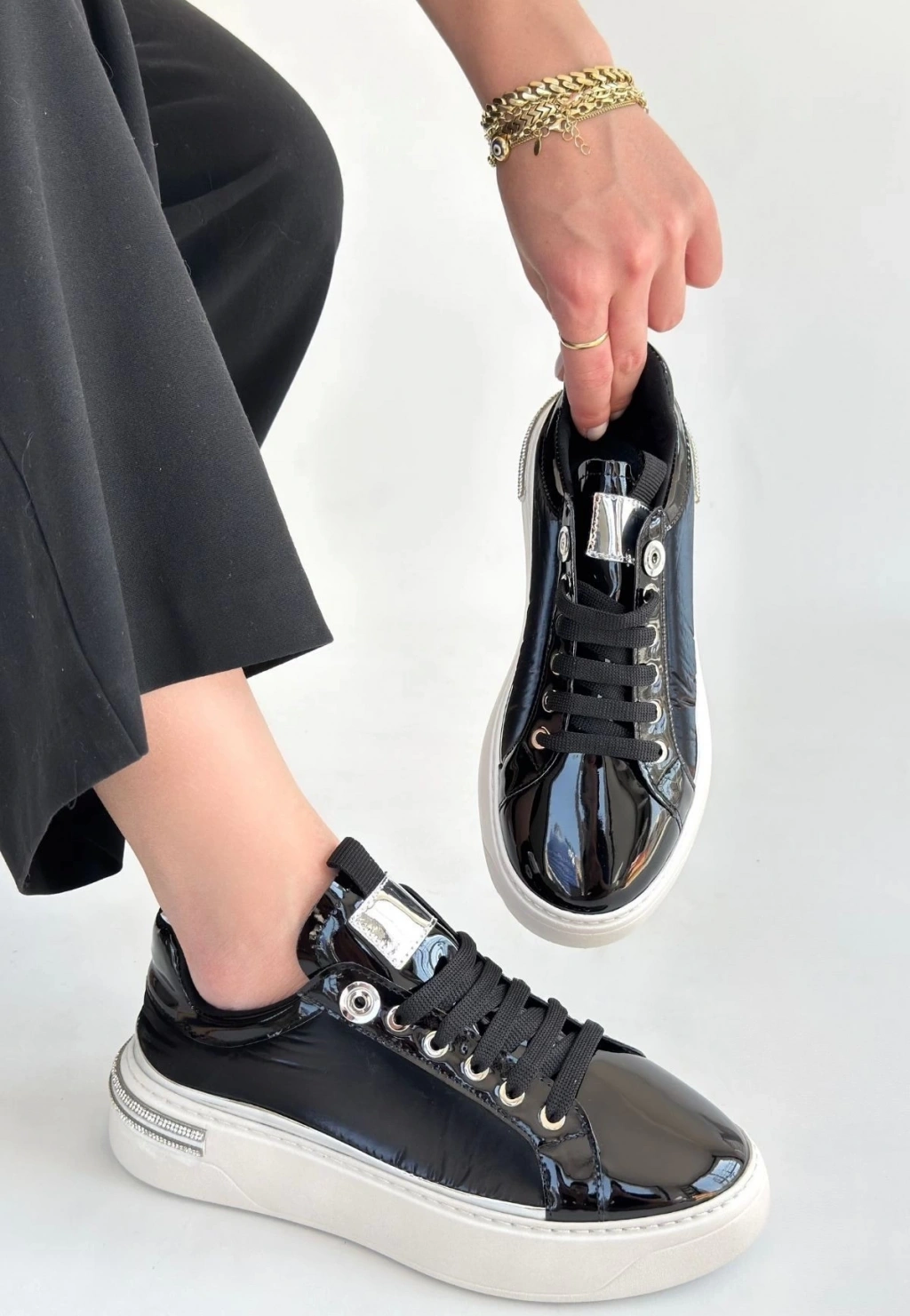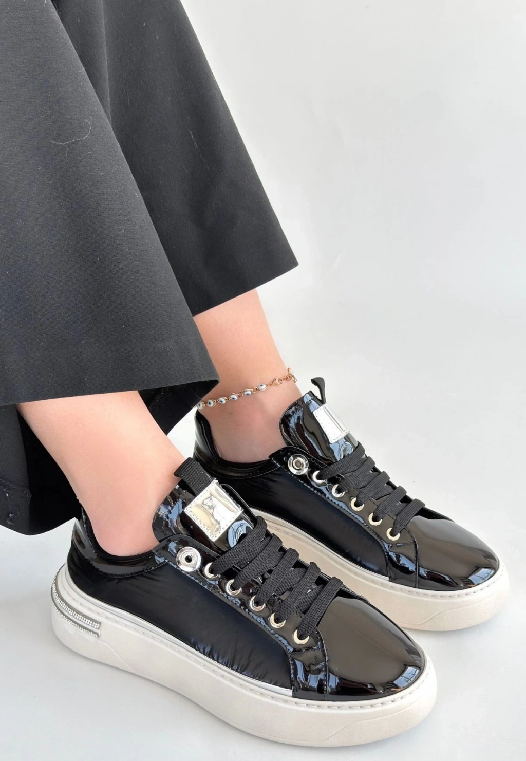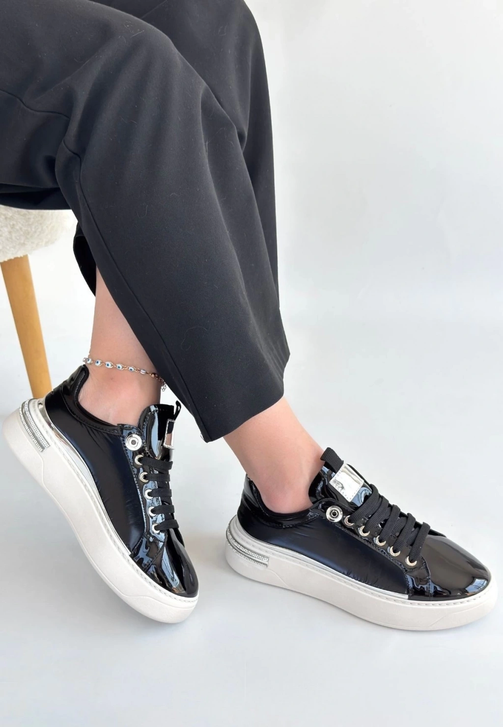 Yejja Siyah Cilt Bağcıklı Spor Ayakkabı