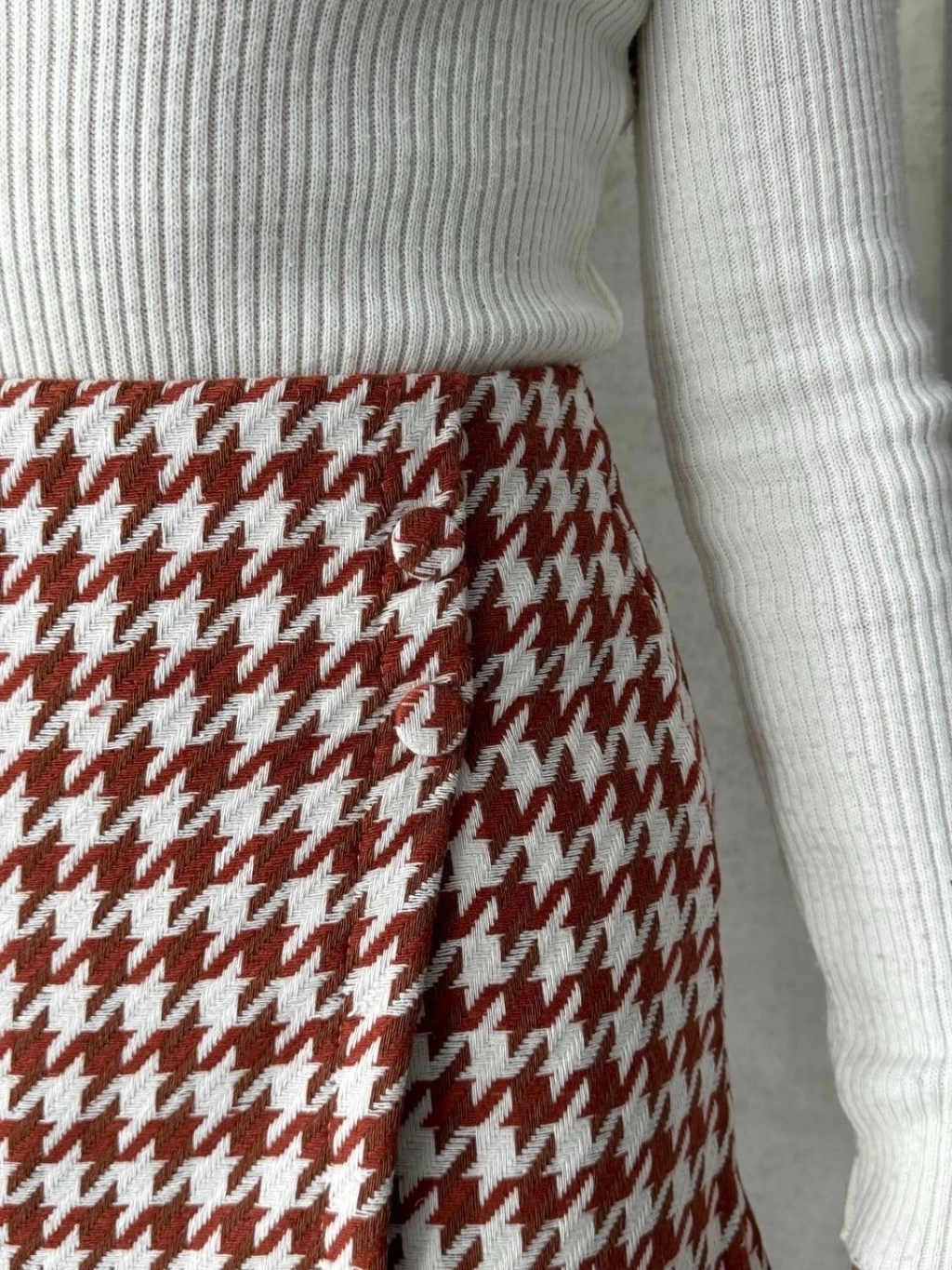 İki düğmeli kaz ayağı desen ch kumaş şort etek beyazturuncu h26414