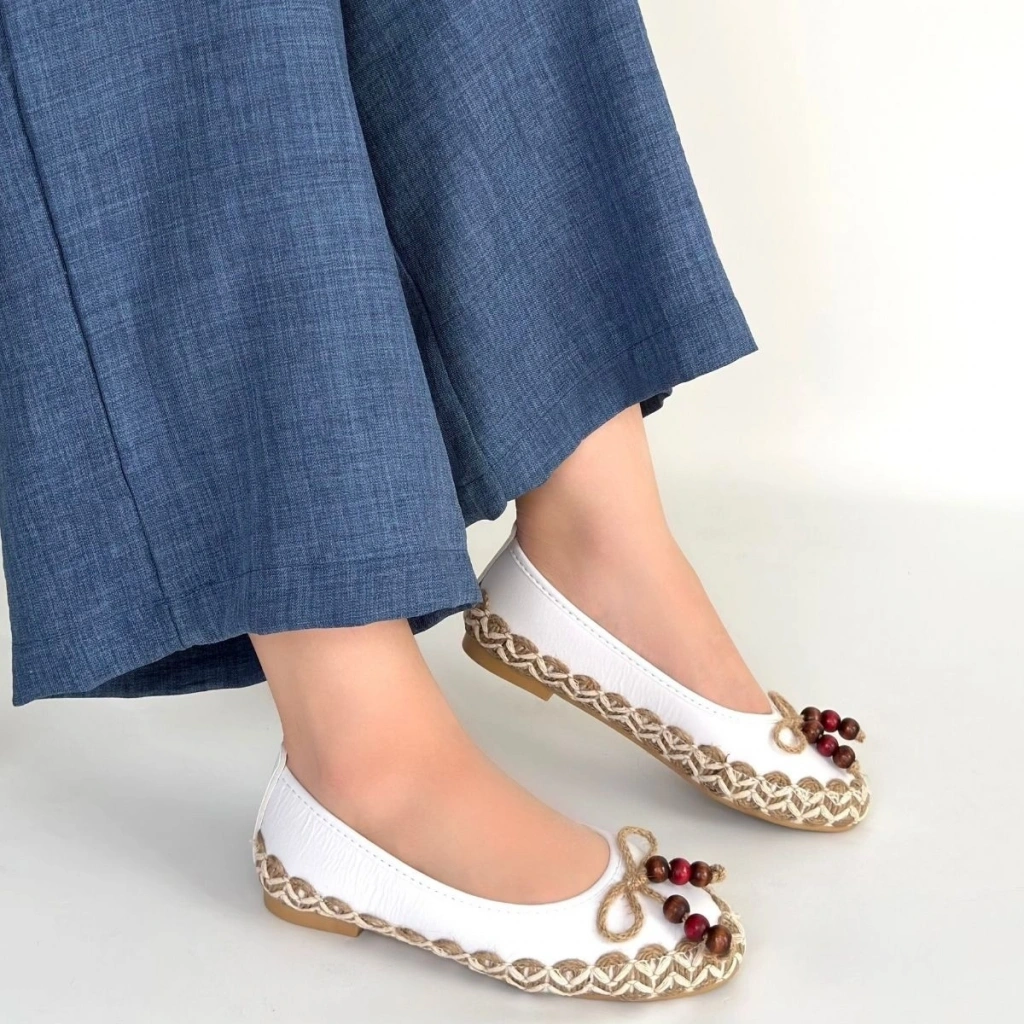 Ilwe Beyaz Cilt Babet Ayakkabı