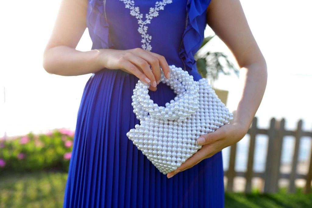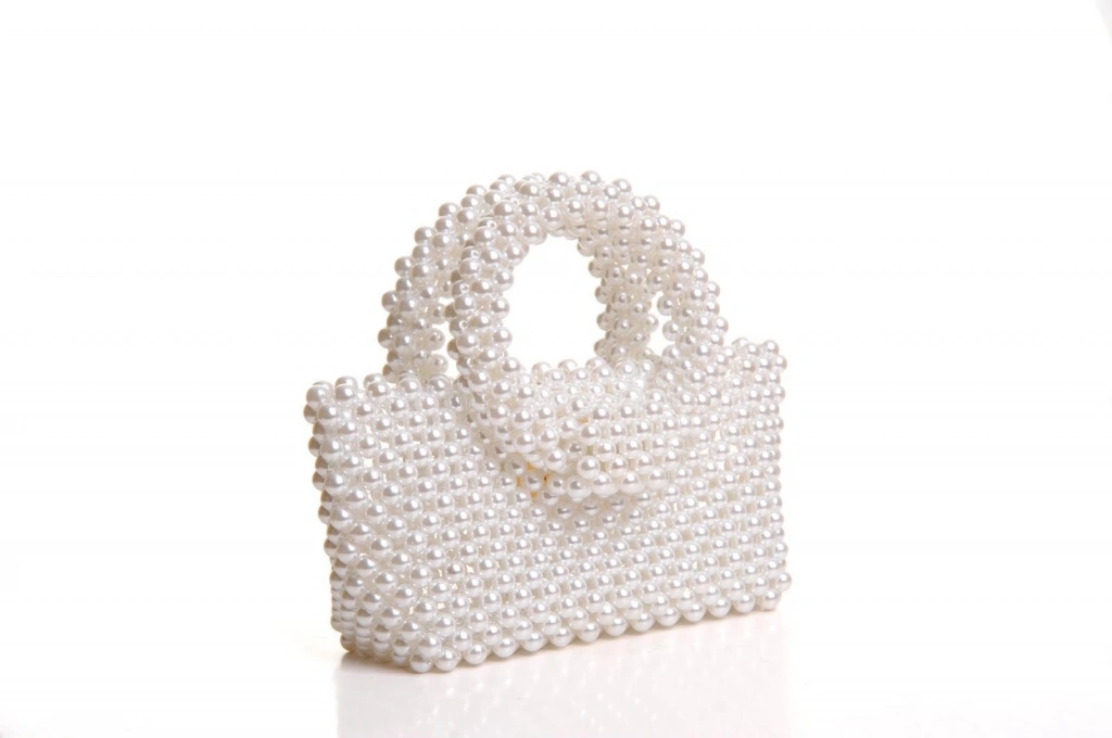 İncili el yapımı yuvarlak kol el çantası